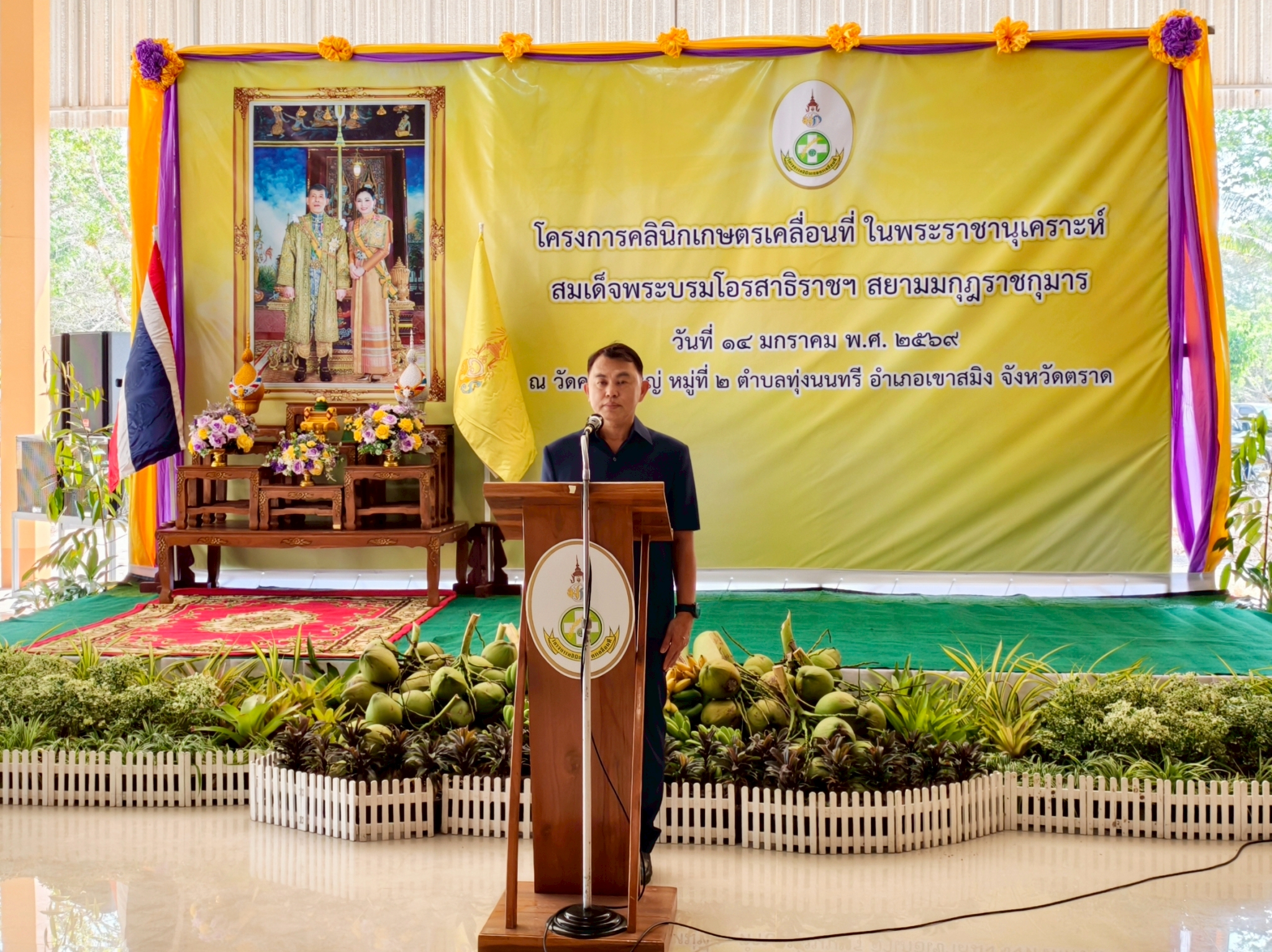 วันที่ ๑๔ มกราคม ๒๕๖๙ นางจรีภรณ์ มีศรี ผู้อำนวยการศูนย์วิจัยและพัฒนาการเพาะเลี้ยงสัตว์น้ำจืดตราด พร้อมเจ้าหน้าที่หน่วยงาน เข้าร่วมโครงการคลินิกเกษตรเคลื่อนที่ในพระราชานุเคราะห์ สมเด็จพระบรมโอรสาธิราชฯ สยามมกุฎราชกุมาร ไตรมาสที่ ๑/๒๕๖๙ณ วัดคลองใหญ่ หมู่ที่ ๒ ตำบลทุ่งนนทรี อำเภอเขาสมิง จังหวัดตราด โดยมีนายพีระ เอี่ยมสุนทร รองผู้ว่าราชการจังหวัดตราด เป็นประธาน