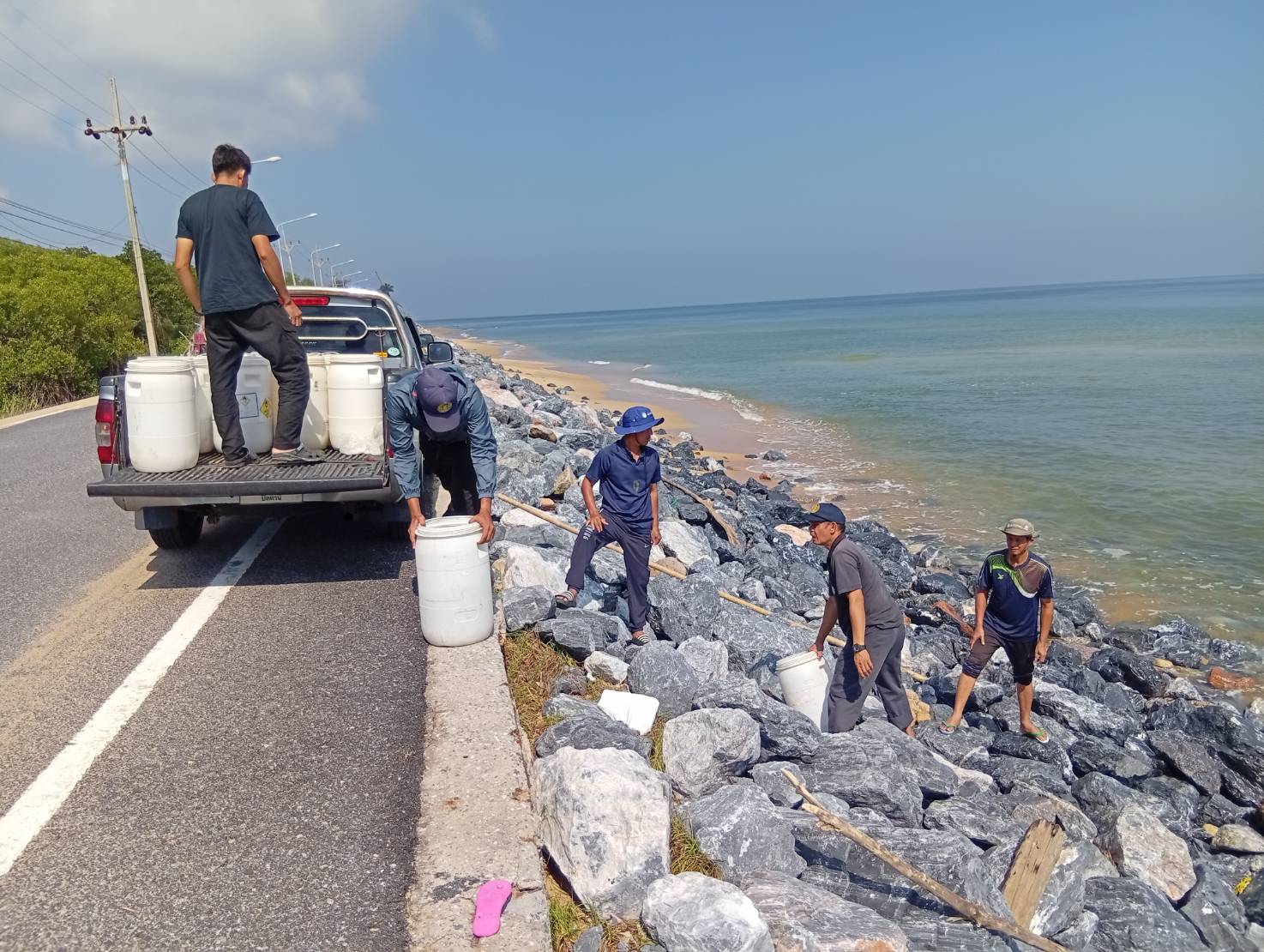 ในวันที่ 2 ธันวาคม 2568 นางลักขณา ละอองศิริวงศ์ ผู้อำนวยการศูนย์วิจัยและพัฒนาการเพาะเลี้ยงสัตว์น้ำชายฝั่งปัตตานี มอบหมายให้นายจักรกฤษณ์ นพรัตน์ นักวิชาการประมงปฏิบัติการ พร้อมด้วยบุคลากรของศูนย์วิจัยฯ ร่วมกับชาวประมงพื้นบ้าน ปล่อยพันธุ์กุ้งแชบ๊วย ระยะ PL15 จำนวน 2,000,000 ตัว และพันธุ์ปลากะพงขาว ขนาด 1 เซนติเมตรจำนวน 10,000 ตัว บริเวณบ้านดาโต๊ะ ม.4 ตำบลแหลมโพธิ์ อำเภอยะหริ่ง จังหวัดปัตตานี ตามแผนงานโครงการบริหารจัดการทรัพยากรประมง ปีงบประมาณ 2569