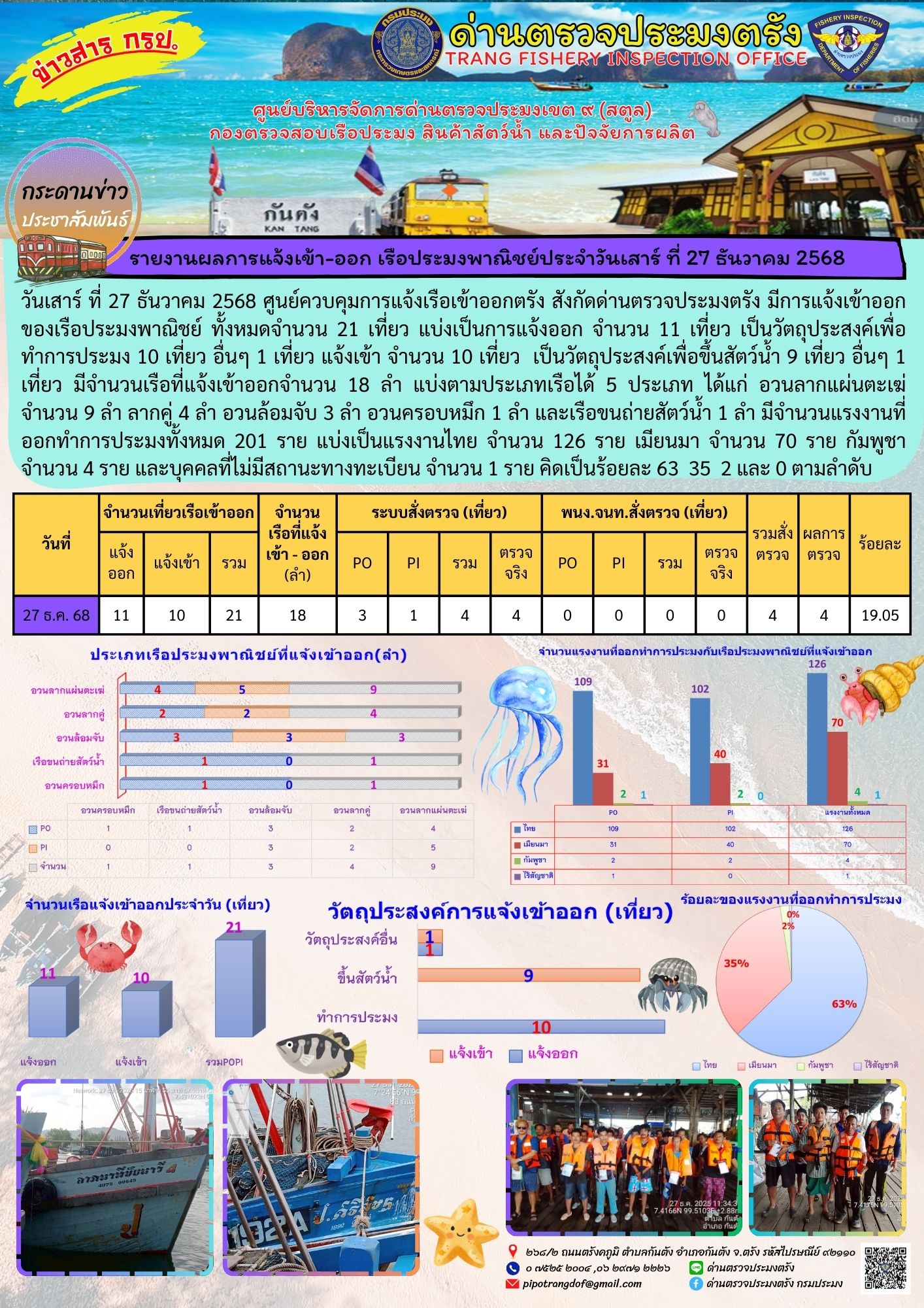 #ผลการแจ้งเข้าออกและการตรวจสอบเรือประมงประจำวันที่ 27 ธันวาคม 2568