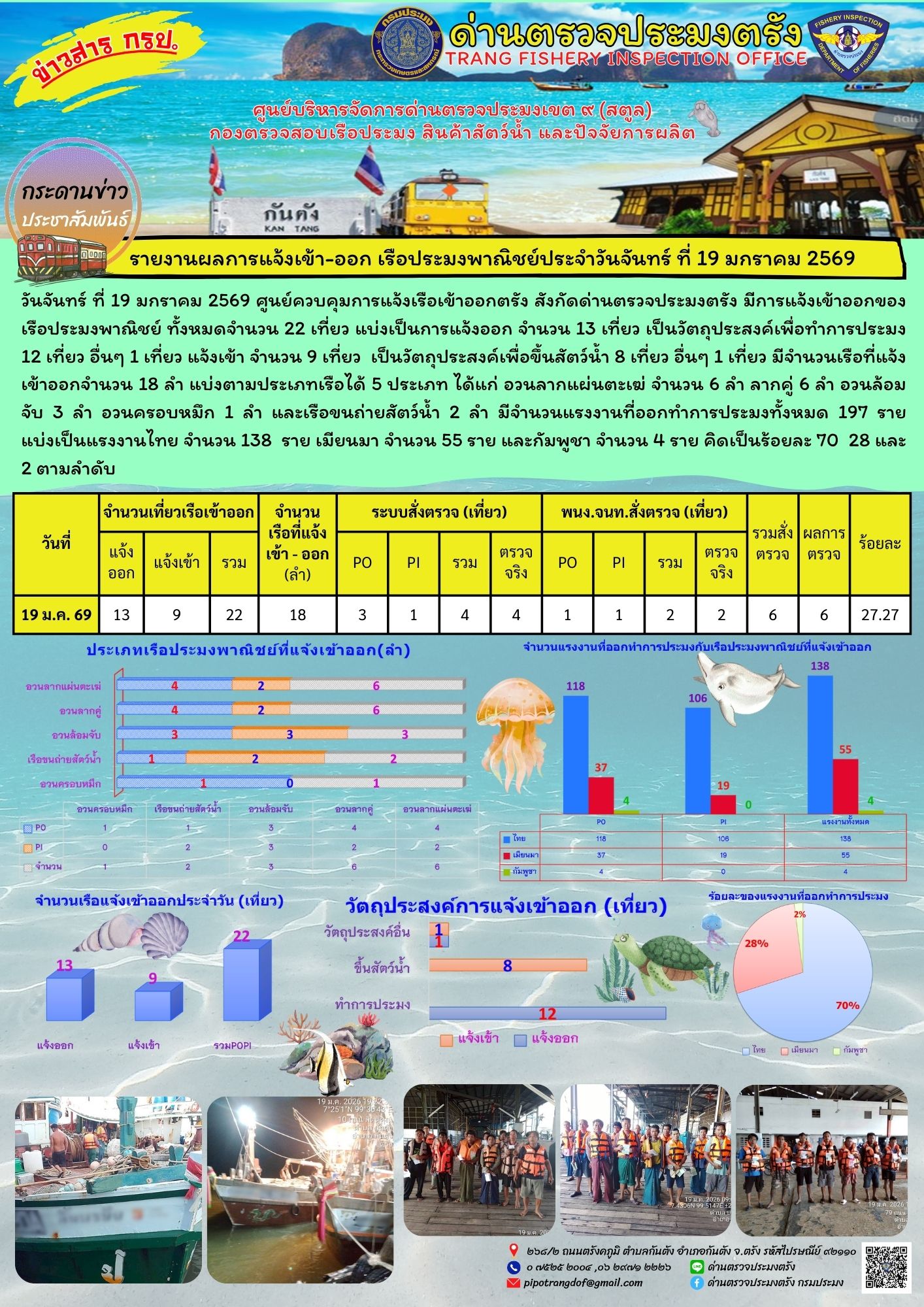 #ผลการแจ้งเข้าออกและการตรวจสอบเรือประมงประจำวันที่ 19 มกราคม 2569