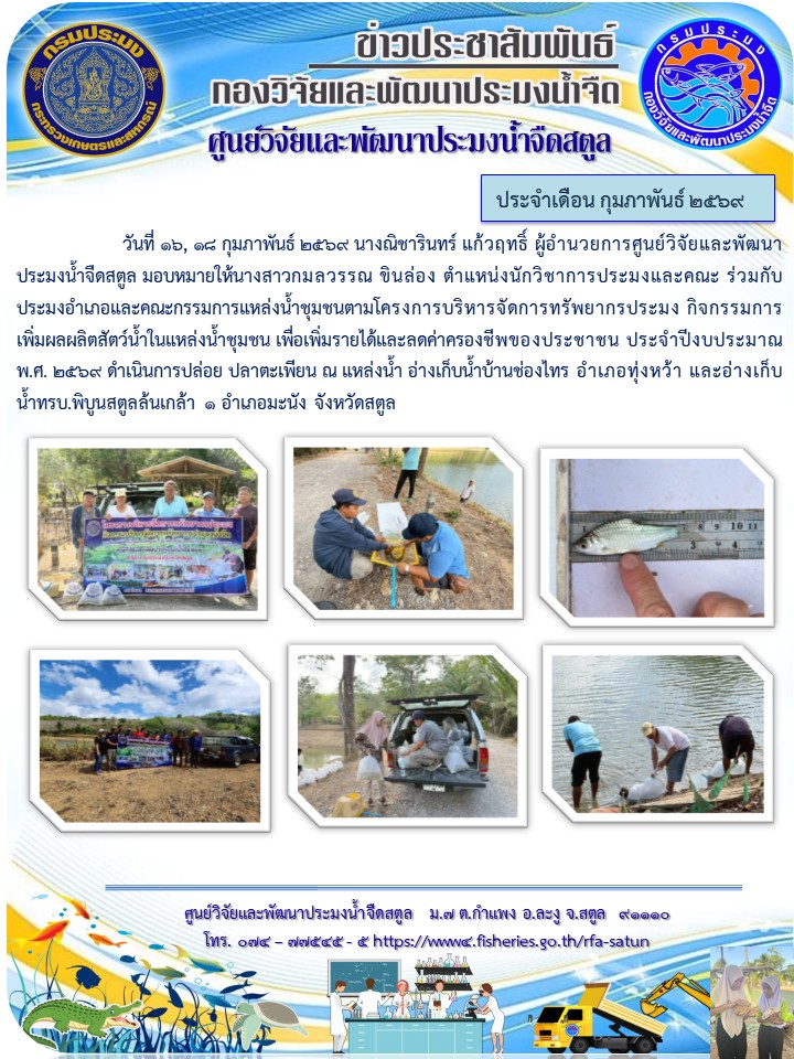รวบรวมข่าวประชาสัมพันธ์ ศูนย์วิจัยและพัฒนาประมงน้ำจืดสตูล
