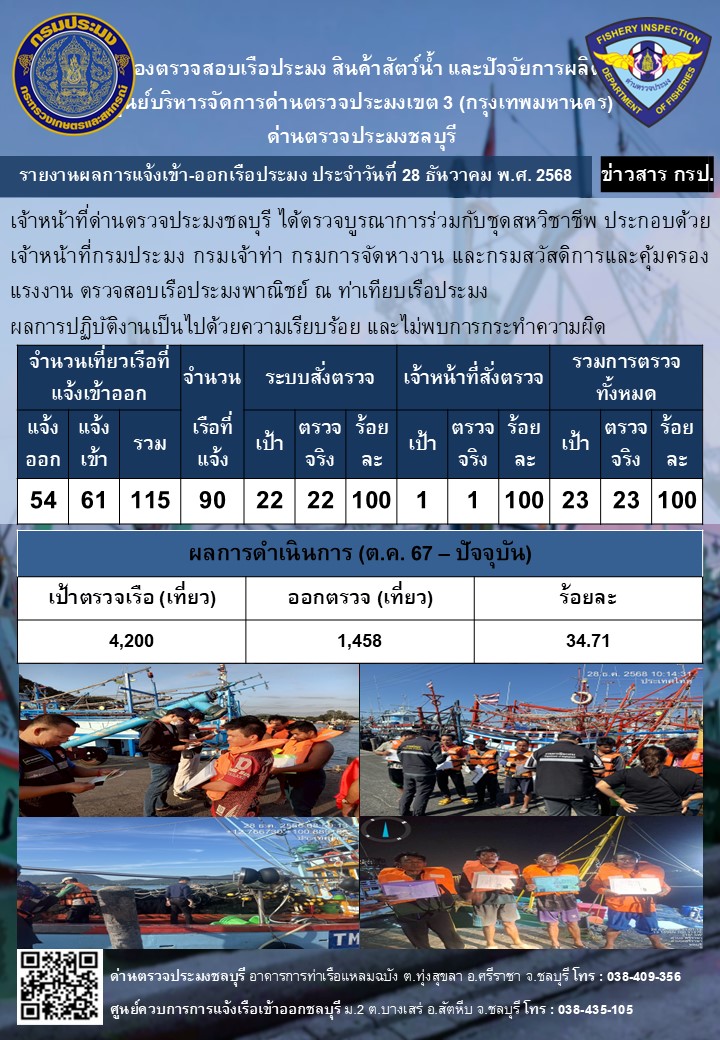 วันที่ 26-31 ธ.ค. 2568 ผลการปฏิบัติงานเป็นไปด้วยความเรียบร้อย