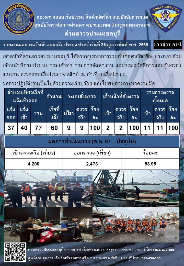 วันที่ 26-28 ก.พ. 2569 ผลการปฏิบัติงานเป็นไปด้วยความเรียบร้อย