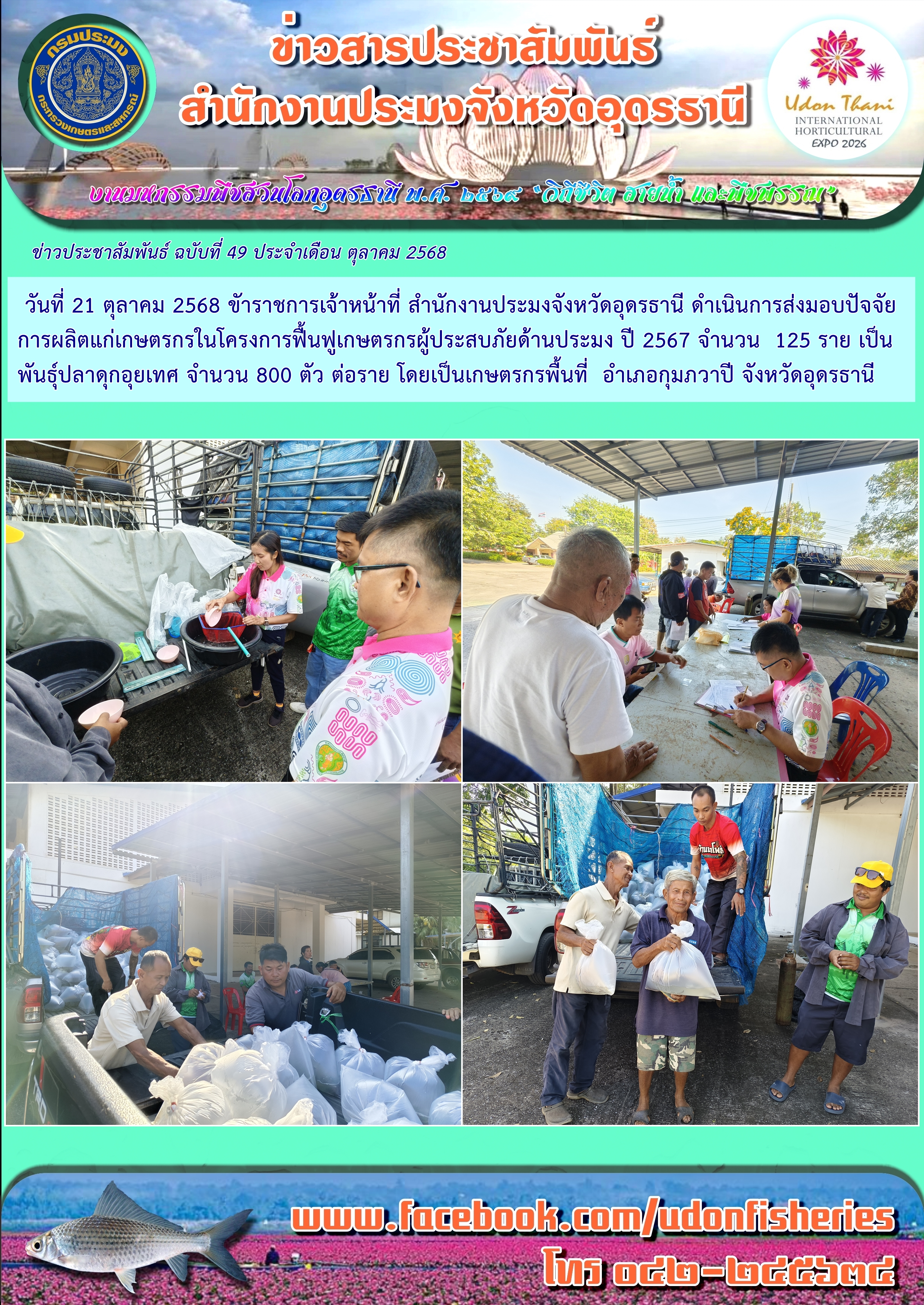 การส่งมอบปัจจัยการผลิตแก่เกษตรกรในโครงการฟื้นฟูเกษตรกรผู้ประสบภัยด้านประมง ปี 2567 จังหวัดอุดรธานี