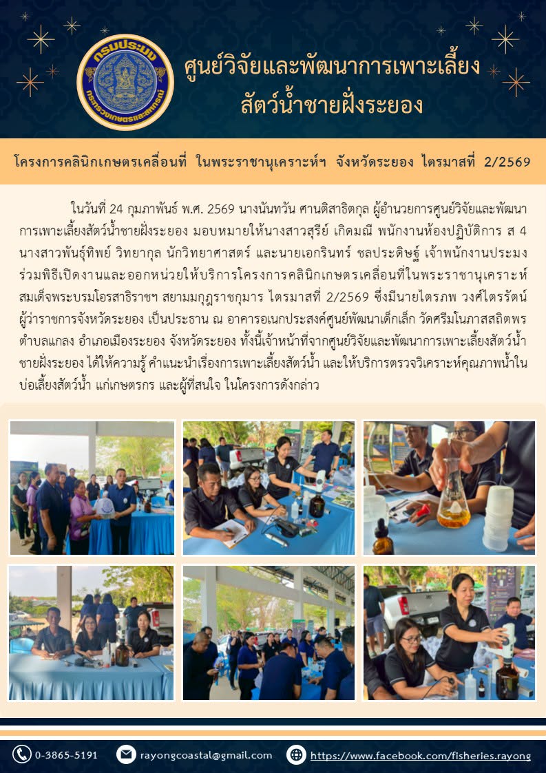 ศูนย์วิจัยและพัฒนาการเพาะเลี้ยงสัตว์น้ำชายฝั่งระยอง เลขที่ 50 เกษตรกลาง เขตจตุจักร กรุงเทพมหานคร 10900