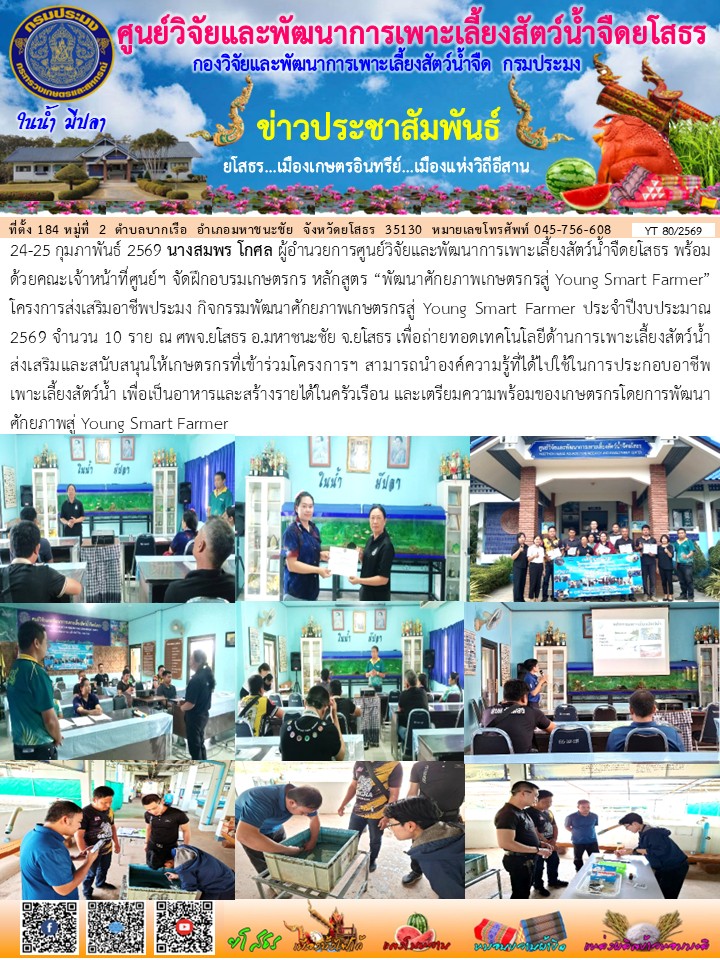 ศูนย์วิจัยและพัฒนาการเพาะเลี้ยงสัตว์น้ำจืดยโสธร เลขที่ 50 เกษตรกลาง เขตจตุจักร กรุงเทพมหานคร 10900