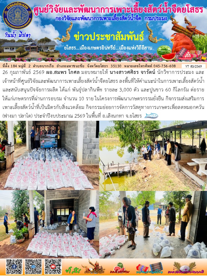 กับข้อเสนอแนะจากเจ้าของข้อมูล โดยศูนย์วิจัยและพัฒนาการเพาะเลี้ยงสัตว์น้ำจืดยโสธรจะประกาศแจ้งให้ทราบอย่างชัดเจนก่อนเริ่มดำเนินการ