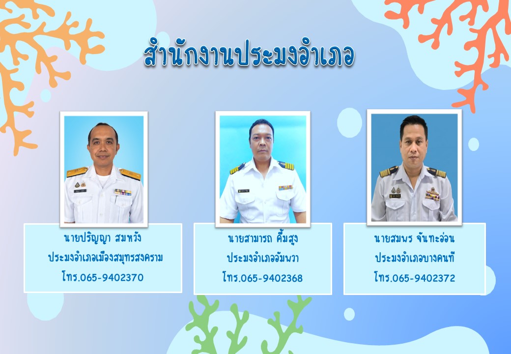 สำนักงานประมงจังหวัดสมุทรสงคราม เลขที่ 50 เกษตรกลาง เขตจตุจักร กรุงเทพมหานคร 10900