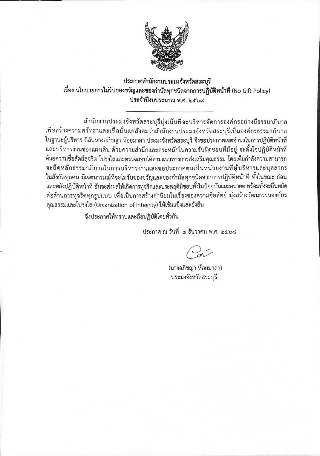ประกาศจังหวัดสระบุรี เรื่อง ประกาศผู้ชนะการเสนอราคา ซื้อวัสดุสำนักงานประเภทหมึกพิมพ์ จำนวน 1 รายการ โดยวิธีเฉพาะเจาะจง