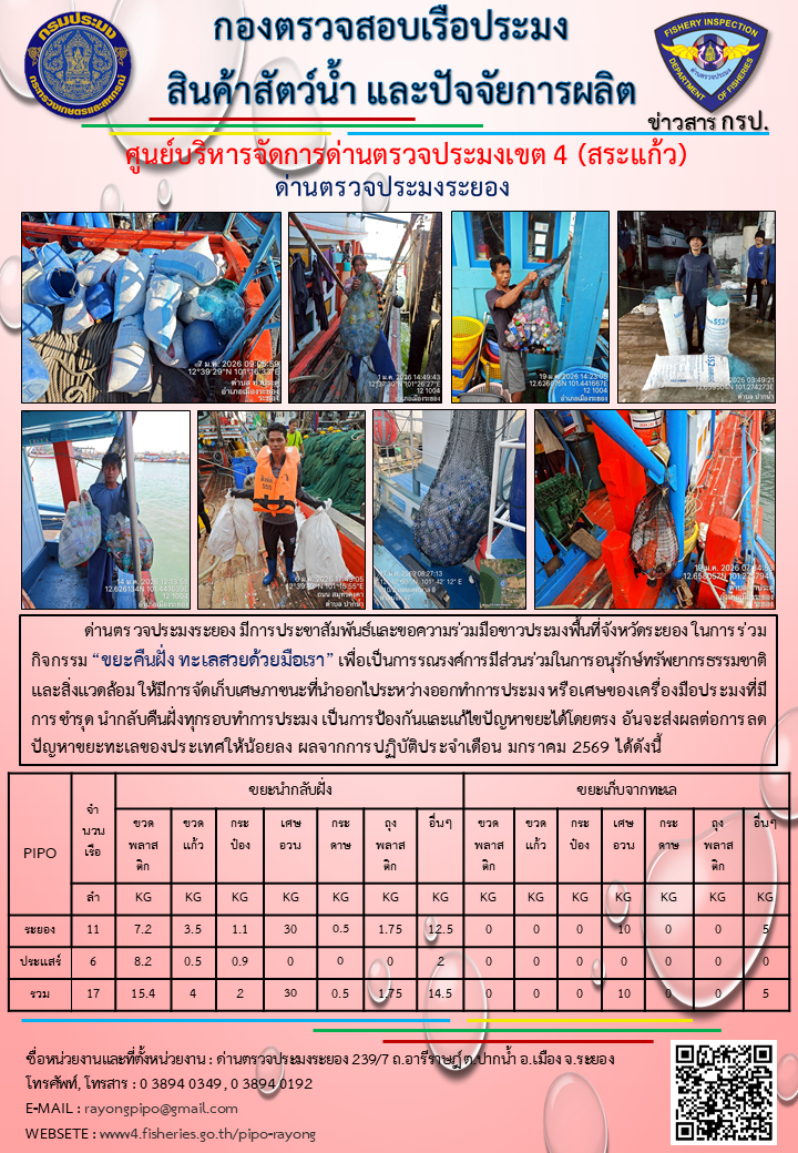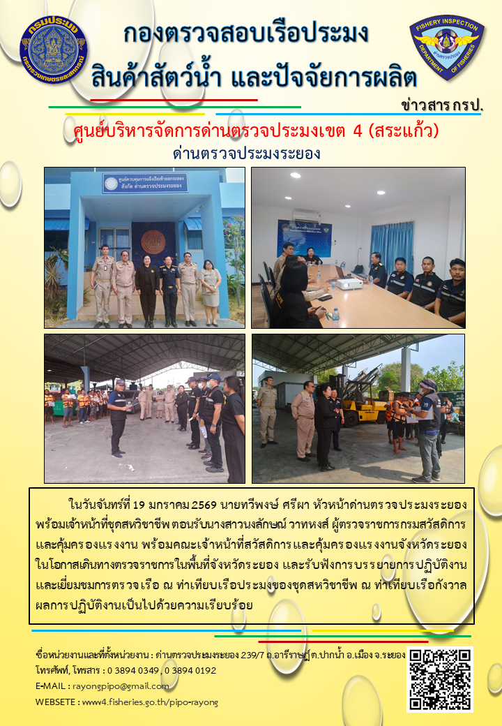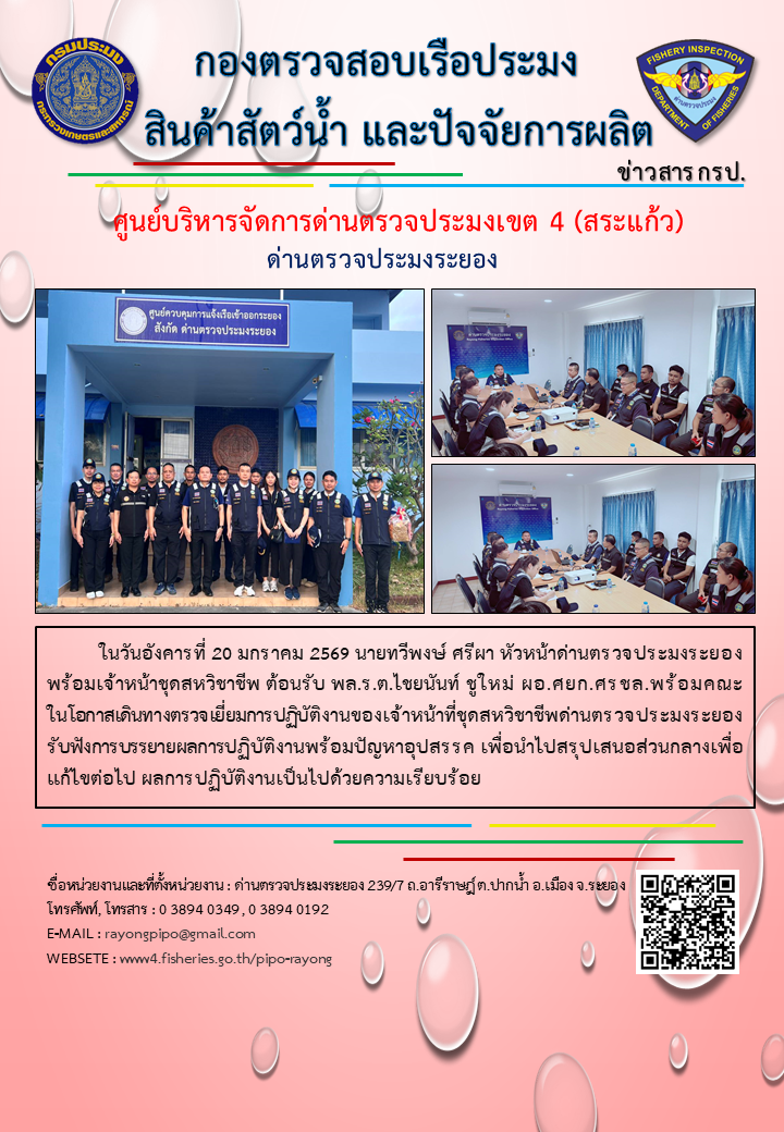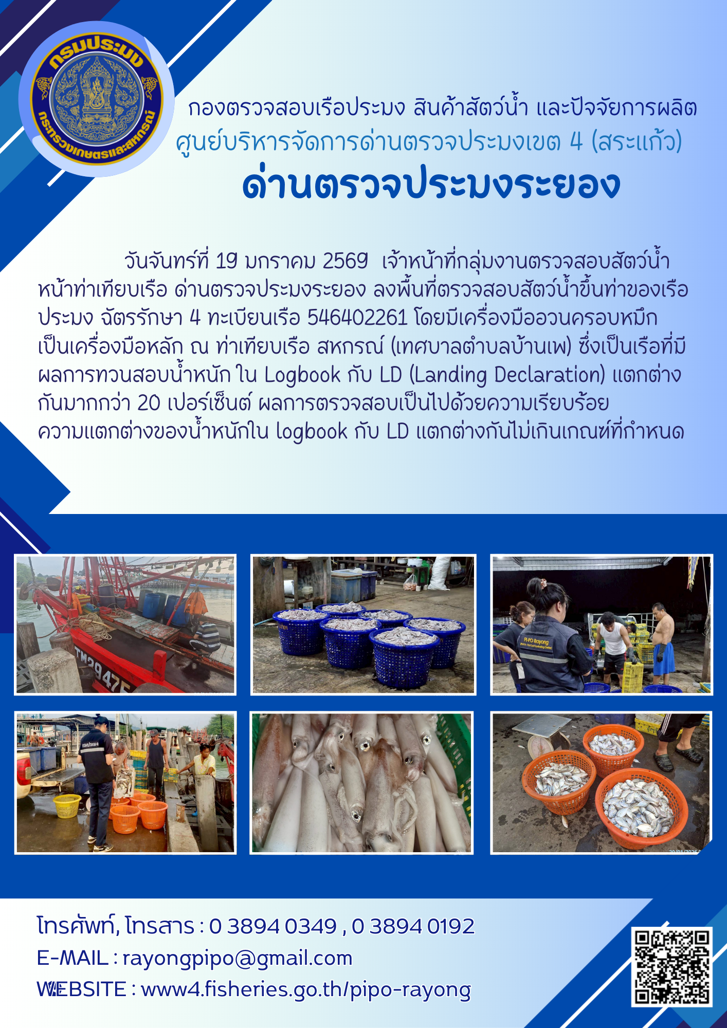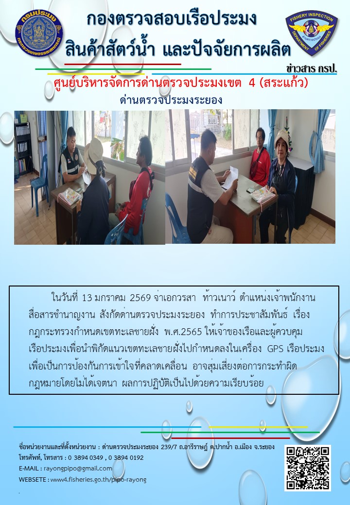 กับข้อเสนอแนะจากเจ้าของข้อมูล โดยด่านตรวจประมงระยองจะประกาศแจ้งให้ทราบอย่างชัดเจนก่อนเริ่มดำเนินการ