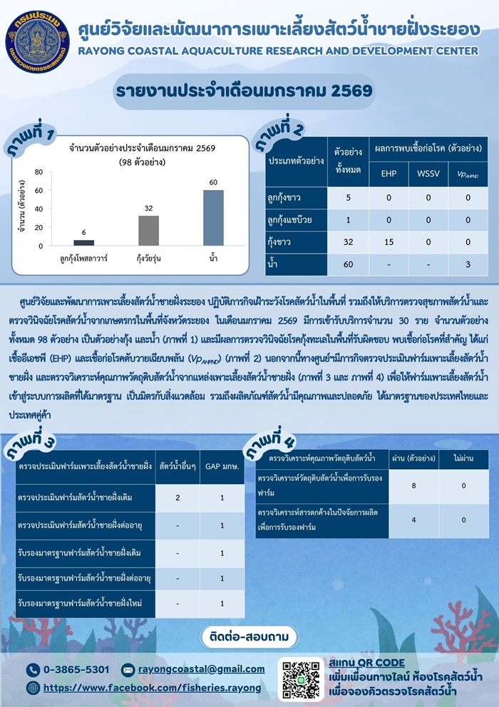 ให้บริการด้านโรคสัตว์น้ำ และตรวจรับรองมาตรฐานฟาร์ม ประจำปีงบประมาณ 2569..คลิก