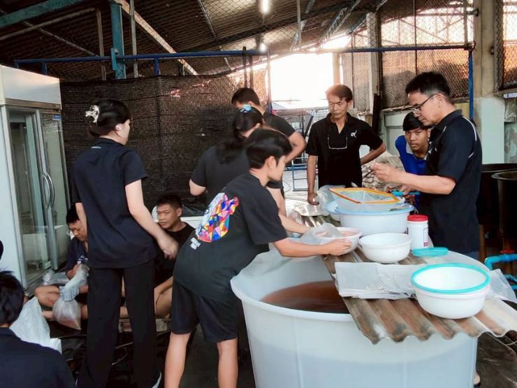 วันพฤหัสบดีที่ ๒๕ ธันวาคม พ.ศ. ๒๕๖๘ นางชมพูนุท สามห้วย ผู้อำนวยศูนย์วิจัยและพัฒนาการเพาะเลี้ยงสัตว์น้ำชายฝั่งฉะเชิงเทรา มอบหมายให้นายกฤษณ์ธนสรรค์ อินทร์บำรุง ตำแหน่ง นักวิชาการประมงปฏิบัติการ พร้อมด้วยเจ้าหน้าที่ของศูนย์ฯ ร่วมกิจกรรมบรรจุพันธุ์สัตว์น้ำ เพื่อถวายเป็นพระราชกุศล เนื่องในวันคล้ายวันพระบรมราชสมภพ พระบาทสมเด็จพระบรมชนกาธิเบศร มหาภูมิพลอดุลยเดชมหาราช บรมนาถบพิตร วันชาติและวันพ่อแห่งชาติ ๕ ธันวาคม ๒๕๖๘ โดยศูนย์วิจัยและพัฒนาการเพาะเลี้ยงสัตว์น้ำชายฝั่งฉะเชิงเทราได้ให้ความอนุเคราะห์สนับสนุนลูกพันธุ์กุ้งแชบ๊วย จำนวน ๒,๐๐๐,๐๐๐ ตัว ให้กับสำนักงานประมงจังหวัดชลบุรี เพื่อนำไปปล่อยในพื้นที่อำเภอชายทะเล จำนวน ๔ อำเภอ ได้แก่ อำเภอเมือง อำเภอศรีราชา อำเภอบางละมุง และอำเภอสัตหีบ จังหวัดชลบุรี ทั้งนี้ เพื่อแสดงความจงรักภักดีและน้อมรำลึกในพระมหากรุณาธิคุณของพระบาทสมเด็จพระบรมชนกาธิเบศร มหาภูมิพลอดุลยเดชมหาราช บรมนาถบพิตร อย่างหาที่สุดมิได้