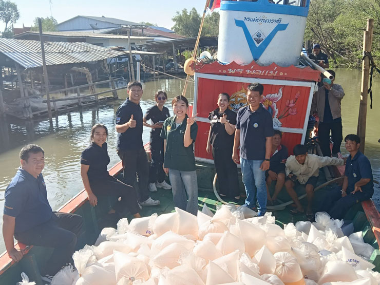 วันอังคารที่ ๖ มกราคม พ.ศ. ๒๕๖๙ นางชมพูนุท สามห้วย ผู้อำนวยการศูนย์วิจัยและพัฒนาการเพาะเลี้ยงสัตว์น้ำชายฝั่งฉะเชิงเทรา พร้อมด้วยนายกฤษณ์ธนสรรค์ อินทร์บำรุง ตำแหน่ง นักวิชาการประมงปฏิบัติการ และเจ้าหน้าที่ศูนย์ฯ เข้าร่วมกิจกรรมจิตอาสาพัฒนาชุมชนประมง (๑ ศูนย์ ๑ หน่วย ๑ ชุมชนประมงต้นแบบ) ซึ่งจัดโดยศูนย์ป้องกันและปราบปรามประมงทะเลสมุทรปราการ ทั้งนี้ กิจกรรมดังกล่าวมีวัตถุประสงค์เพื่อสร้างเครือข่ายชุมชนประมงในการบริหารจัดการทรัพยากรประมงอย่างต่อเนื่อง และเป็นชุมชนที่มีศักยภาพพร้อมที่จะพัฒนาเป็นต้นแบบด้านการบริหารจัดการทรัพยากรสัตว์น้ำ รวมทั้งสร้างความร่วมมือเป็นเครือข่ายเฝ้าระวังการทำประมงผิดกฎหมาย ในการนี้ ศูนย์วิจัยและพัฒนาการเพาะเลี้ยงสัตว์น้ำชายฝั่งฉะเชิงเทราได้สนับสนุนลูกพันธุ์กุ้งแชบ๊วย จำนวน ๒,๐๐๐,๐๐๐ ตัว ให้กับศูนย์ป้องกันและปราบปรามประมงทะเลสมุทรปราการ เพื่อปล่อยลงทะเล ณ ปากอ่าวคลองด่าน บริเวณชุมชนประมงท้องถิ่นบ้านสีล้ง หมู่ที่ ๑๒ ตำบลคลองด่าน อำเภอบางบ่อ จังหวัดสมุทรปราการ โดยมีเจ้าหน้าที่ ผู้นำชุมชน และชาวประมงในพื้นที่เข้าร่วมกิจกรรมฯ อย่างพร้อมเพรียงกัน
