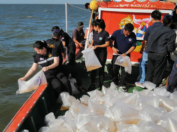 ผอ.ศพช.ฉะเชิงเทรา พร้อมด้วยข้าราชการและเจ้าหน้าที่ เข้าร่วมกิจกรรมจิตอาสา ปล่อยลูกพันธุ์กุ้งแชบ๊วย จำนวน ๒,๐๐๐,๐๐๐ ตัว ณ ปากอ่าวคลองด่าน บริเวณชุมชนประมงท้องถิ่นบ้านสีล้ง หมู่ที่ ๑๒ ตำบลคลองด่าน อำเภอบางบ่อ จังหวัดสมุทรปราการ