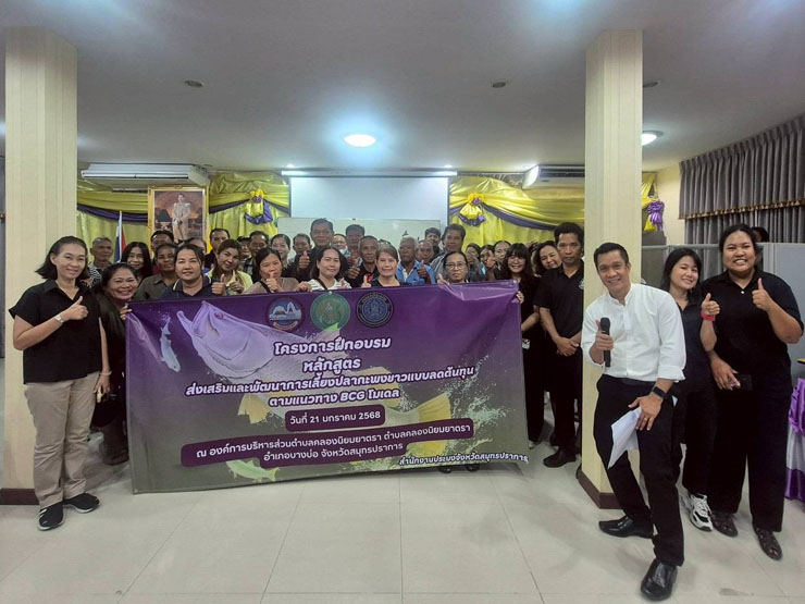 ผอ.ศพช.ฉะเชิงเทรา พร้อมด้วยข้าราชการ เข้าร่วม “โครงการฝึกอบรมการส่งเสริมและพัฒนาการเลี้ยงปลากะพงขาวแบบลดต้นทุนตามแนวทาง BCG โมเดล” ณ องค์การบริหารส่วนตำบลคลองนิยมยาตรา หมู่ที่ ๒ ตำบลคลองนิยมยาตรา อำเภอบางบ่อ จังหวัดสมุทรปราการ