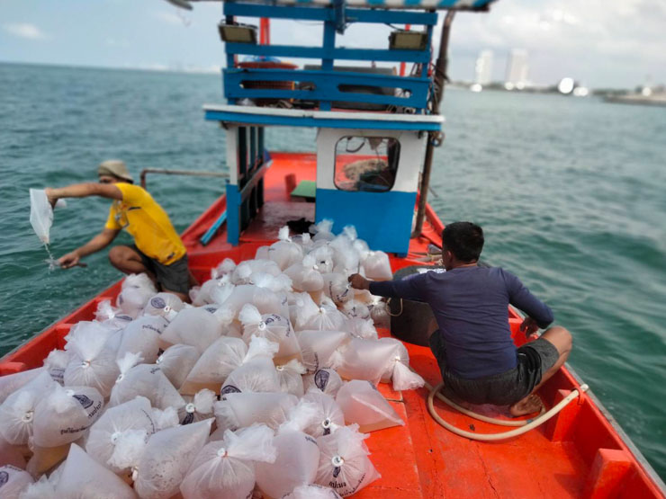 ศพช.ฉะเชิงเทรา สนับสนุนลูกพันธุ์กุ้งแชบ๊วย จำนวน ๑,๒๐๐,๐๐๐ ตัว ให้กับสำนักงานประมงจังหวัดชลบุรี เพื่อปล่อยในพื้นที่อำเภอสัตหีบ จังหวัดชลบุรี