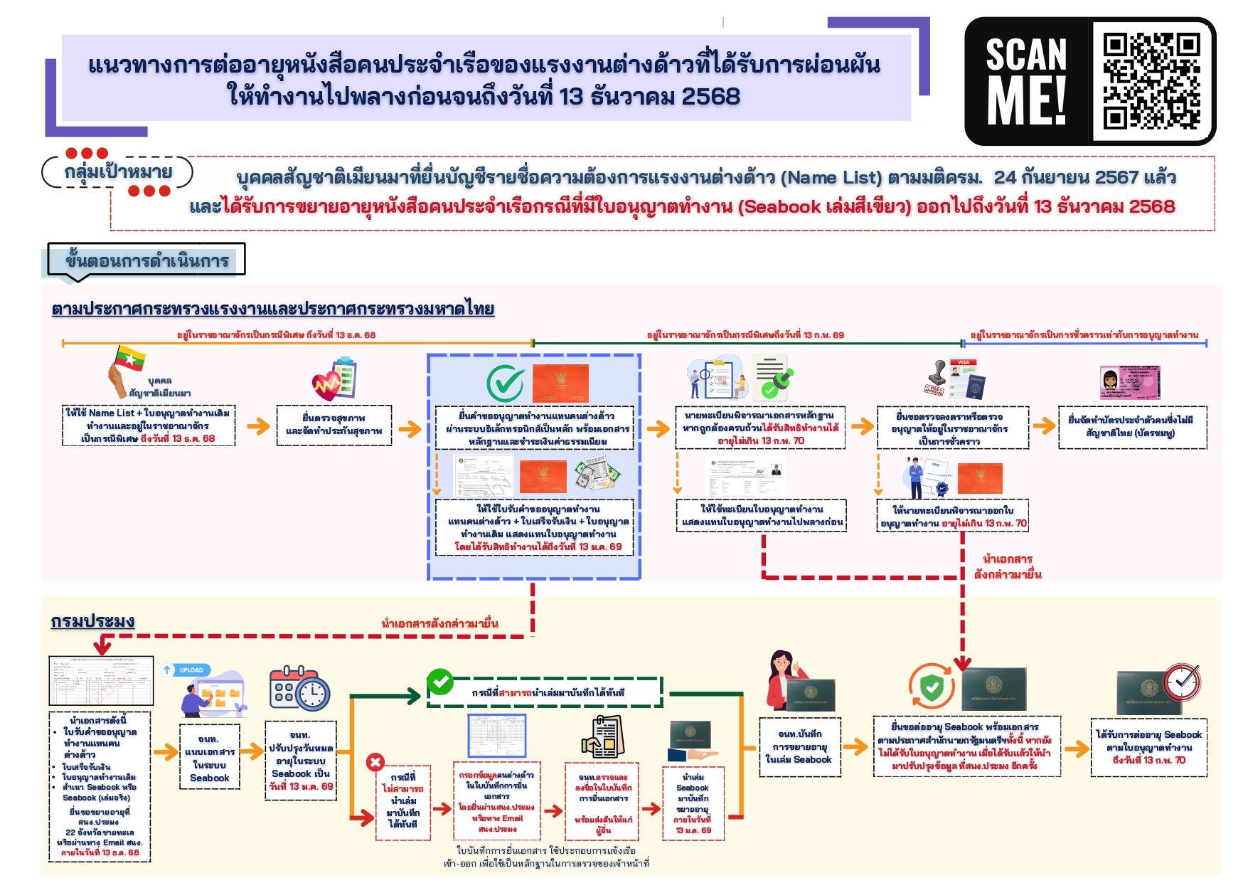 NEW แจ้งประชาสัมพันธ์ การขยายอายุหนังสือคนประจำเรือสำหรับคนต่างด้าว กรณีที่มีใบอนุญาตทำงานที่จะหมดอายุในวันที่ 13 ธันวาคม 2568..คลิก