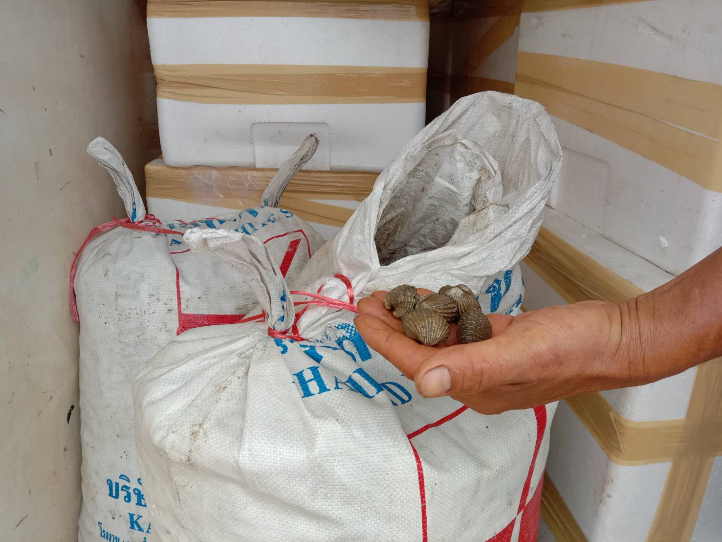 4.สัตว์น้ำแช่แย็น(กุ้งขาว หมึกกระดอง ปูม้า หอยแครง รวมน้ำหนัก 0.3 ตัน) มูลค่า 36,700 บาท