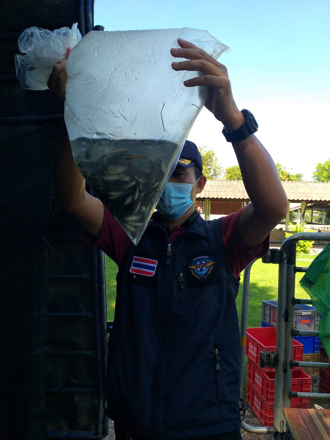 เจ้าหน้าที่ศูนย์บริหารจัดการด่านตรวจประมง เขต 2 (หนองคาย) ตรวจสอบสินค้าประมง ส่งออกไปยัง สปป.ลาว ประกอบด้วยน้ำปลาร้า กะปิ ลูกพันธุ์สัตว์น้ำ (ปลานิล ปลาดุกแอฟริกา)