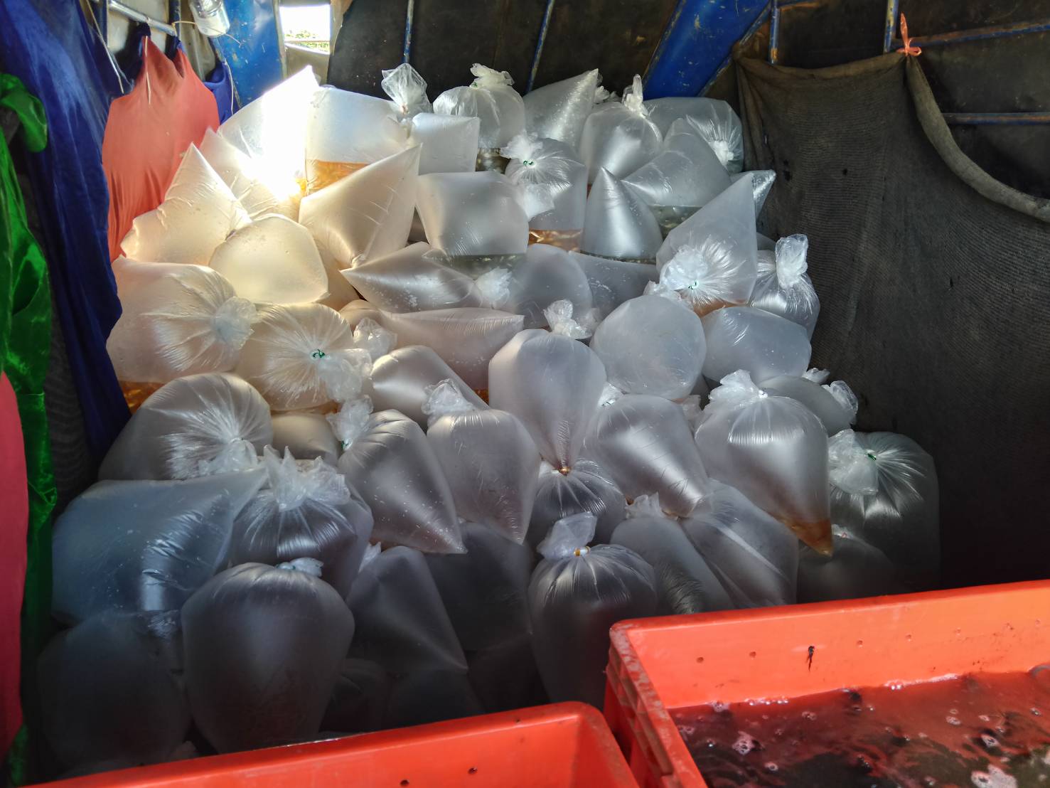 เจ้าหน้าที่ศูนย์บริหารจัดการด่านตรวจประมงเขต 2 (หนองคาย) ตรวจสอบลูกพันธุ์ปลาดุกแอฟริกา ปลากดเหลือง ปลาตะเพียน ปลาไน และลูกปลาเปคูแดง ส่งออกไปยัง สปป.ลาว