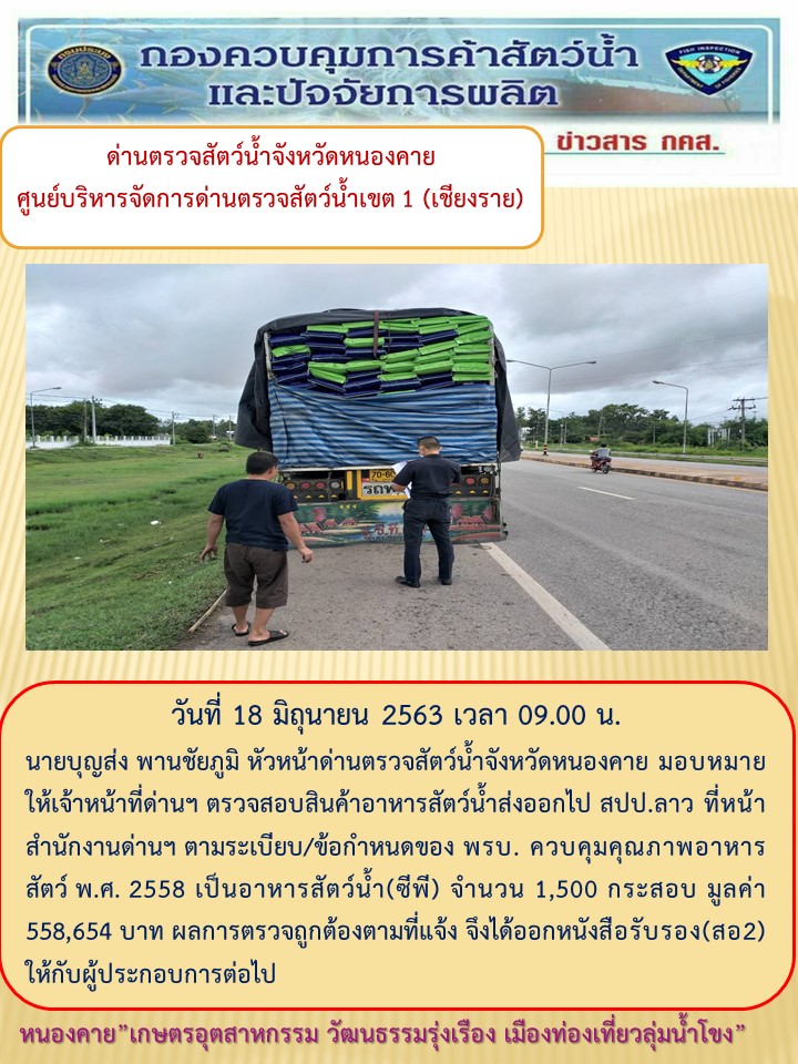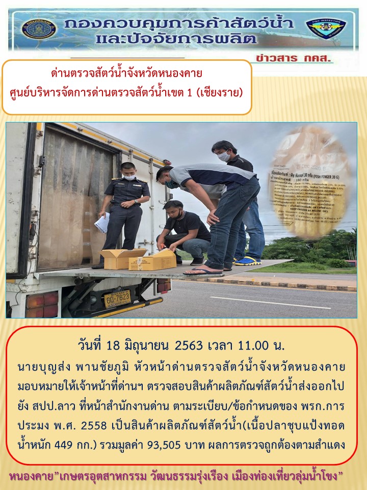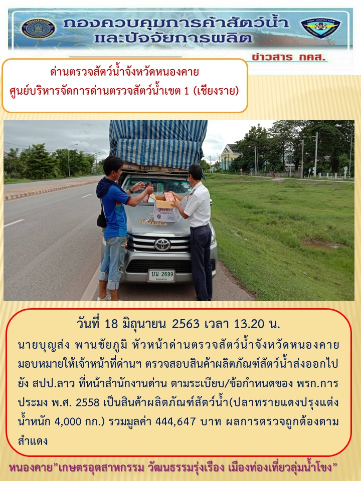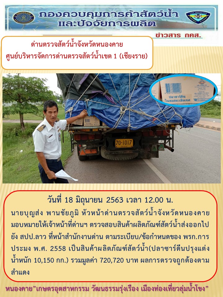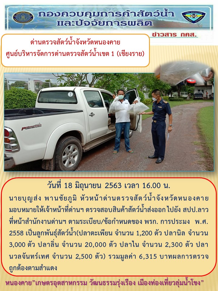 • ตรวจสอบลูกพันธุ์สัตว์น้ำ ส่งออกไปยัง สปป.ลาว ตรวจสอบลูกพันธุ์สัตว์น้ำ ส่งออกไปยัง สปป.ลาว  จำนวนผู้อ่าน 45  ตรวจป้องกันลักลอบสินค้าประมงผิดกฏหมาย ตรวจป้องกันลักลอบสินค้าประมงผิดกฏหมาย  จำนวนผู้อ่าน 44 ตรวจป้องกันลักลอบสินค้าประมงผิดกฏหมาย ตรวจป้องกันลักลอบสินค้าประมงผิดกฏหมาย  จำนวนผู้อ่าน 44 เข้าร่วมประชุมคณะกรมการจังหวัดและหัวหน้าส่วนราชการประจำจังหวัด ประจำเดือนกรกฎาคม 2568 (ครั้งที่7/2568) เข้าร่วมประชุมคณะกรมการจังหวัดและหัวหน้าส่วนราชการประจำจังหวัด ประจำเดือนกรกฎาคม... จำนวนผู้อ่าน 40 เข้าร่วมประชุมคณะกรรมการภาครัฐและภาคเอกชนเพื่ออำนวยความสะดวกในการนำเข้าส่งออก (ครอ.) เข้าร่วมประชุมคณะกรรมการภาครัฐและภาคเอกชนเพื่ออำนวยความสะดวกในการนำเข้าส่งออก (ค... จำนวนผู้อ่าน 39 ตวรจสอบสินค้าประมง ส่งออกไปยัง จีน ตวรจสอบสินค้าประมง ส่งออกไปยัง จีน  จำนวนผู้อ่าน 39 เข้าร่วมประชุมติดตามสถานการณ์การค้าชายแดนและผ่านแดน จังหวัดหนองคาย เข้าร่วมประชุมติดตามสถานการณ์การค้าชายแดนและผ่านแดน จังหวัดหนองคาย  จำนวนผู้อ่าน 39 พิธีเปิดโครงการพัฒนาลุ่มน้ำห้วยตอนล่าง จังหวัดหนองคาย พิธีเปิดโครงการพัฒนาลุ่มน้ำห้วยตอนล่าง จังหวัดหนองคาย  จำนวนผู้อ่าน 38 ตรวจป้องกันการลักลอบสินค้าประมงผิดกฎหมาย ตรวจป้องกันการลักลอบสินค้าประมงผิดกฎหมาย  จำนวนผู้อ่าน 37 ตรวจสอบลูกพันธุ์สัตว์น้ำ ส่งออกไปยัง สปป.ลาว  ตรวจสอบลูกพันธุ์สัตว์น้ำ ส่งออกไปยัง สปป.ลาว   จำนวนผู้อ่าน 36 พิธีปล่อยพันธุ์สัตว์น้ำเนื่องในวันเฉลิมพระชนมพรรษา สมเด็จพระนางเจ้าสิริกิติ์ พระบรมราชินีนาถ พระบรมราชชนนีพันปีหลวง 12 สิงหาคม 2568 พิธีปล่อยพันธุ์สัตว์น้ำเนื่องในวันเฉลิมพระชนมพรรษา สมเด็จพระนางเจ้าสิริกิติ์ พระ... จำนวนผู้อ่าน 34 ตรวจป้องกันการลักลอบสินค้าประมงผิดกฎหมาย ตรวจป้องกันการลักลอบสินค้าประมงผิดกฎหมาย  จำนวนผู้อ่าน 33 ตรวจป้องกันลักลอบสินค้าประมงผิดกฏหมาย ตรวจป้องกันลักลอบสินค้าประมงผิดกฏหมาย  จำนวนผู้อ่าน 32 พิธีปล่อยพันธุ์สัตว์น้ำ เนื่องในวันเฉลิมพระชนมพรรษา สมเด็จพระนางเจ้าสุทิดา พัชรสุธาพิมลลักษณ พระบรมราชินี 3 มิถุนายน 2568 พิธีปล่อยพันธุ์สัตว์น้ำ เนื่องในวันเฉลิมพระชนมพรรษา สมเด็จพระนางเจ้าสุทิดา พัชรส... จำนวนผู้อ่าน 30 ร่วมทำลายสินค้าเกษตร ร่วมทำลายสินค้าเกษตร  จำนวนผู้อ่าน 28