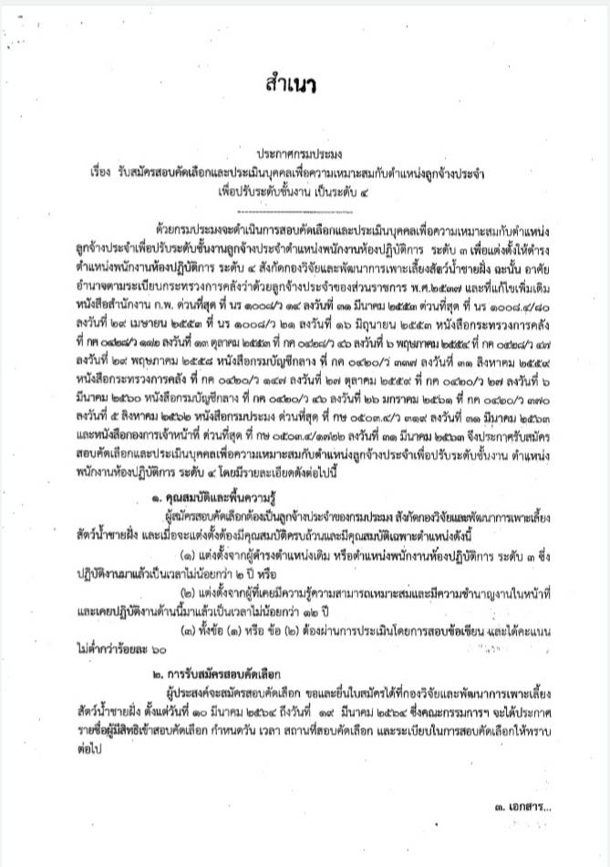 ประกาศกรมประมง เรื่อง รับสมัครสอบคัดเลือกและประเมินบุคคลเพื่อความเหมาะสมกับตำแหน่งลูกจ้างประจำ เพื่อปรับระดับชั้นงาน เป็นระดับ 4