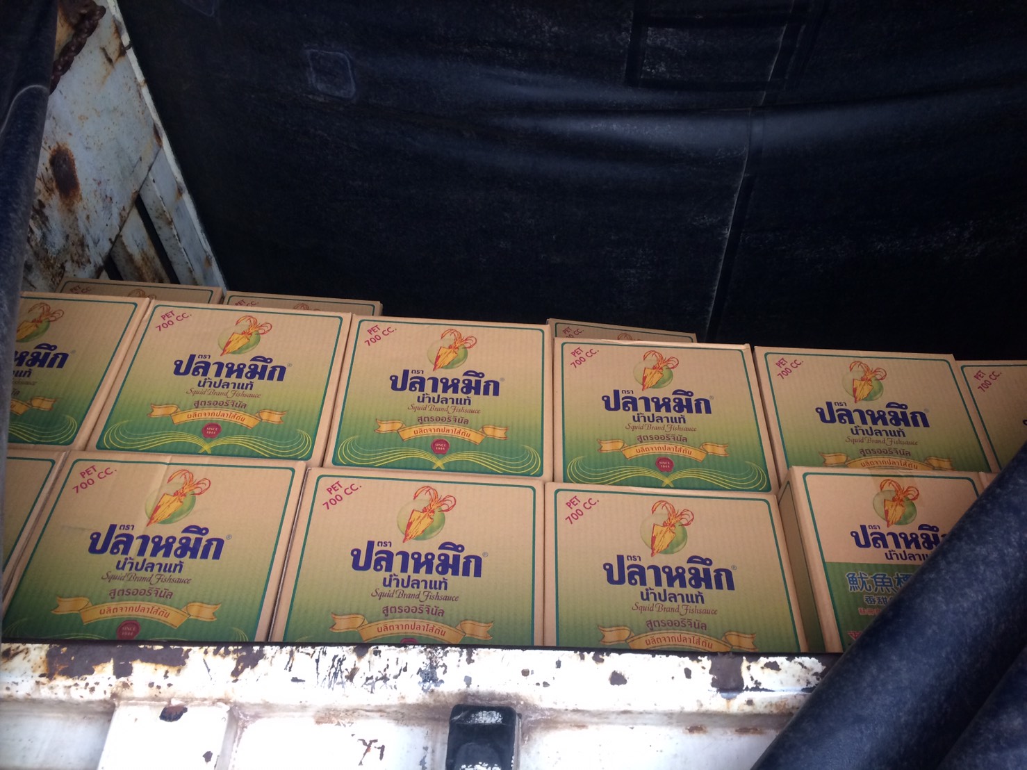 2.ผลิตภัณฑ์สัตว์น้ำ(น้ำปลา ซอสหอยนางรม ปลากระป๋อง ปลาเส้น รวมน้ำหนัก 88 ตัน) มูลค่า 3,010,369 บาท