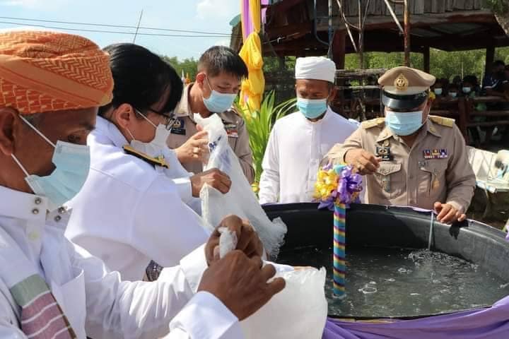 สำหรับสัตว์น้ำที่ปล่อยในวันนี้ประกอบด้วย กุ้งแชบ้วย 500,000 ตัว ปลากะพงทอง 2,000 ตัว ปลากะพงขาว 20,000 ตัว