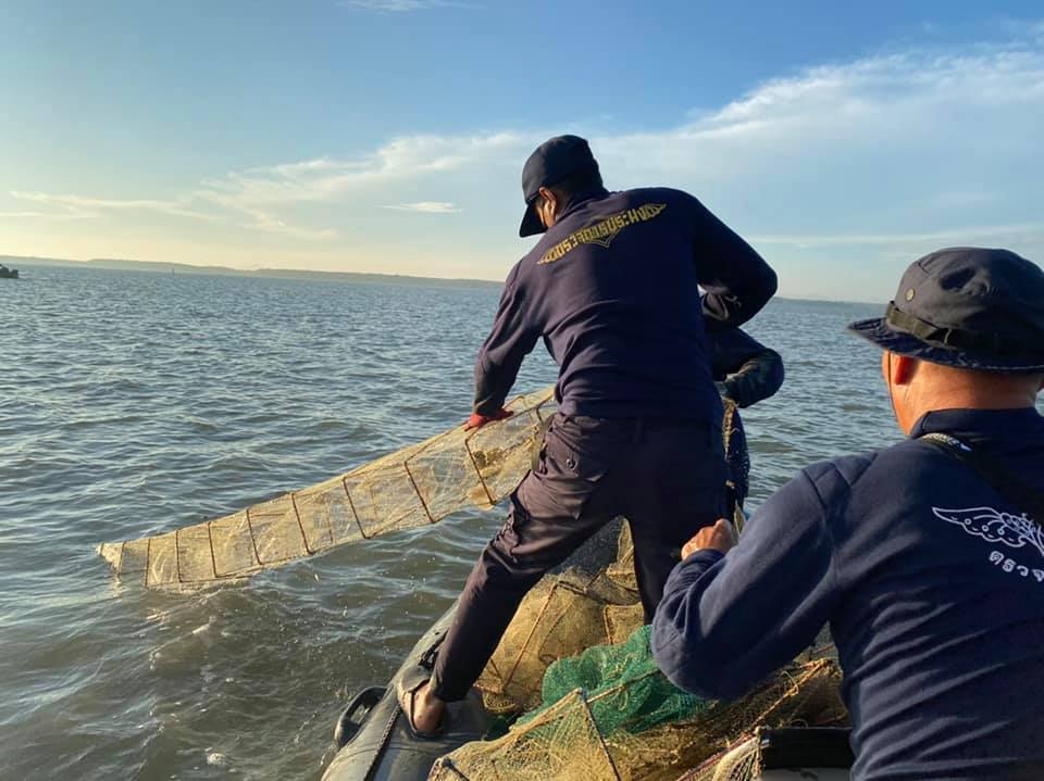 วันอังคารที่ 15 มิถุนายน 2564 เวลาประมาณ 05.30 น. ศูนย์ป้องกันและปราบปรามประมงทะเลปัตตานี กองตรวจการประมง กรมประมง โดยนายชยานนท์ หอมพานิช เจ้าพนักงานประมงปฏิบัติงาน นายวัชรพงษ์ ไชยวงศ์ เจ้าพนักงานประมงปฏิบัติงาน พร้อมด้วยเจ้าหน้าที่ประจำเรือตรวจฯ 209 ร่วมกับนายสุชาติ รัตนเรืองสี สำนักงานทรัพยากรทางทะเลและชายฝั่งที่ 9 นาวาเอกฐิติวัชร ภัทรเกียรติวงศ์ หน.ศูนย์ควบคุมความมั่นคงท่าเรือจังหวัดปัตตานี จ.ส.อ.เจริญ คงมาก ผบ.มว.ปล.2 ฉก.ปัตตานี 25 ร.อ.วิทยา แจ่มน้อย หน่วยเฉพาะกิจกรมทหารพรานที่ 42 และเจ้าหน้าที่ตำรวจน้ำ รวม 42 นาย เรือจำนวน 8 ลำ ออกปฏิบัติงานกิจกรรมควบคุมเฝ้าระวังการทำการประมงในพื้นที่ทะเลชายฝั่ง โดยทำการตรวจยึดเครื่องมือลอบพับได้ หรือ ไอ้โง่ จำนวน 64 ลูก ณ บริเวณอ่าวปัตตานี ตำบลตันหยงลุโละ อำเภอเมือง จังหวัดปัตตานี และได้ดำเนินการส่งพนักงานสอบสวน สภ.เมืองปัตตานี อำเภอเมือง จังหวัดปัตตานี เพื่อดำเนินการต่อไป