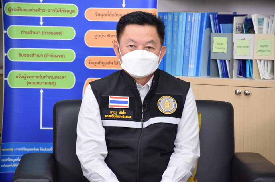 ดร.ถาวร ทันใจ รองอธิบดีกรมประมง ให้สัมภาษณ์สื่อมวลชน