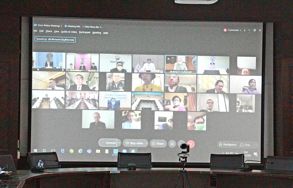 วันที่ 13 กรกฎาคม 2564 เวลา 09.30 น. ณ ห้องประชุมกุลาดำ ชั้น 7 อาคารจุฬาภรณ์ นายมีศักดิ์ ภักดีคง อธิบดีกรมประมง พร้อมด้วย รองอธิบดีจำนวน 2 ท่านได้แก่ นายบัญชา สุขแก้ว และนายถาวร ทันใจ ตลอดจนคณะผู้บริหารกรมประมง เข้าร่วมการประชุมชี้แจงงบประมาณวุฒิสภา ผ่านระบบ Video Conference เพื่อร่วมรับฟังและตอบข้อซักถามในการชี้แจงงบประมาณ