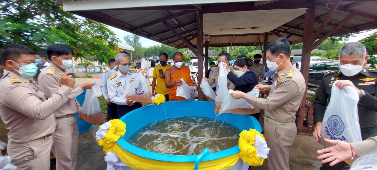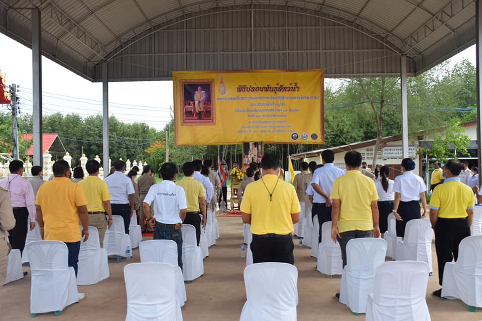 พิธีปล่อยพันธุ์กุ้งกุลาดำ จำนวน 1,500,000 ตัว และลูกพันธุ์ปลาน้ำจืดจำนวน 100,000 ตัว เนื่องในโอกาสวันเฉลิมพระชนมพรรษาพระบาทสมเด็จพระเจ้าอยู่หัว ๒๘ กรกฎาคม ๒๕๖๔ ณ ท่าน้ำวัดบุญนาคประชาสรรค์ ตำบลยี่สาร อำเภออัมพวา จังหวัดสมุทรสงคราม