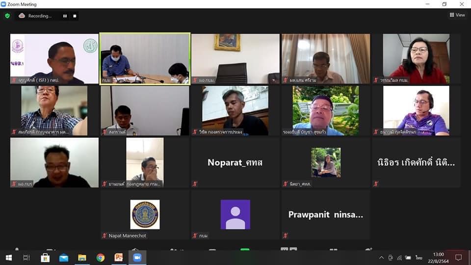 วันอาทิตย์ที่ 22 สิงหาคม 2564 เวลา 13.00 น. นายบัญชา สุขแก้ว รองอธิบดีกรมประมง เป็นประธานการประชุมทางไกลออนไลน์ เพื่อพิจารณาร่างกฎกระทรวงกำหนดเขตทะเลชายฝั่ง 23 จังหวัดชายทะเล ผ่านโปรแกรม Zoom Cloud Meeting โดยมีหัวหน้าผู้ตรวจราชการกรม ผู้ตรวจราชการเขตจังหวัดชายทะเล ผู้อำนวยการกองตรวจการประมง ผู้อำนวยการกองกฎหมาย ผู้อำนวยการกองบริหารจัดการเรือประมงและการทำประมง ผู้อำนวยการกองบริหารจัดการทรัพยากรและกำหนดมาตรการ ผู้แทนศูนย์เทคโนโลยีสารสนเทศและการสื่อสาร และเจ้าหน้าที่ที่เกี่ยวข้อง เข้าร่วมประชุม เพื่อเสนอออกกฎกระทรวงเขตทะเลชายฝั่ง 23 จังหวัด ตามขั้นตอนของกฎหมายต่อไป