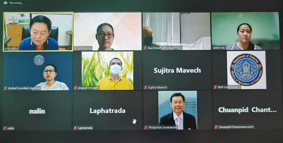 วันพฤหัสบดีที่ 26 สิงหาคม 2564 เวลา 09.30 น. ณ อาคารจุฬาภรณ์ กรมประมง ดร.ถาวร ทันใจ รองอธิบดีกรมประมง เป็นประธานการประชุมหารือการจัดทำคลิปวิดีโอสั้น ผลงานของหน่วยงาน ครั้งที่ 4/2564 ผ่านระบบการประชุมทางไกลออนไลน์ Zoom Cloud Meetings โดยมีเจ้าหน้าที่หน่วยงานที่เกี่ยวข้องเข้าร่วมการประชุม ได้แก่ สำนักงานประมงพื้นที่กรุงเทพมหานคร กองนโยบายและแผนพัฒนาการประมง กองประมงต่างประเทศ กลุ่มเทคโนโลยีโสตทัศนูปกรณ์และสื่อสิ่งพิมพ์ และกลุ่มเผยแพร่และประชาสัมพันธ์ เพื่อร่วมกันพิจารณาเนื้อหา และรายละเอียดประกอบการจัดทำคลิปวิดีโอสั้น ที่จะนำเสนอในรูปแบบการจัดแสดงนิทรรศการเสมือนจริง ในวันคล้ายวันสถาปนากรมประมงครบรอบ 95 ปี วันที่ 21 กันยายน 2564 นี้