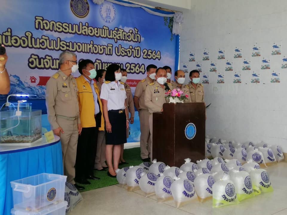 กิจกรรมปล่อยพันธุ์สัตว์น้ำ เนื่องในโอกาสวันประมงแห่งชาติ (21 กันยายน 2564) ณ บริเวณโรงเพาะฟักสัตว์น้ำ ศูนย์วิจัยและพัฒนาการเพาะเลี้ยงสัตว์น้ำชายฝั่งภูเก็ต ตำบลเทพกระษัตรี อำเภอถลาง จังหวัดภูเก็ต