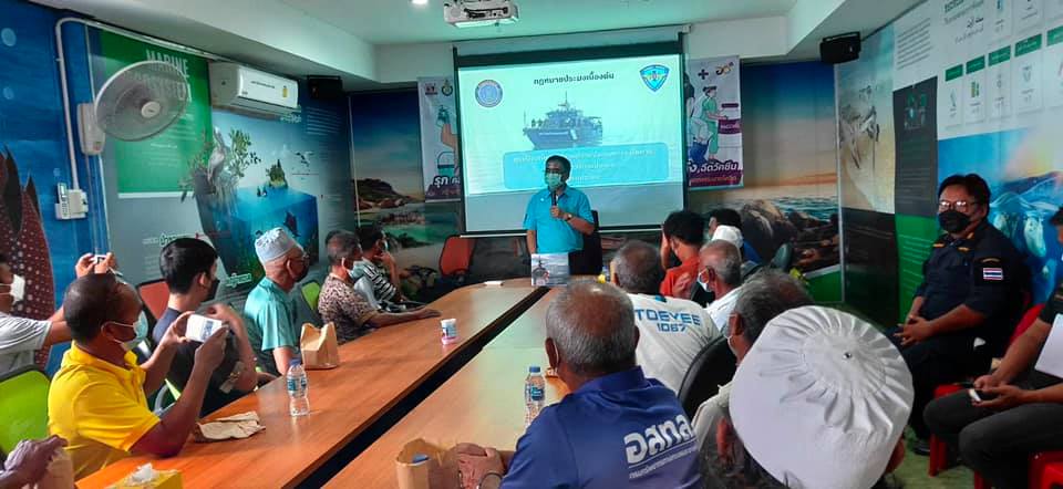 เมื่อวันที่ 1-2 ตุลาคม 2564 เวลา 08.00 - 16.30 น. เรือเอกธัญญะ ฉุยโรจน์ธรรม ประมงจังหวัดปัตตานี มอบหมายให้นางสาวผุสดี จันทร์เมือง ประมงอำเภอปะนาเระ นายตรีเนตร ม่วงมนตรี เจ้าพนักงานประมง และนางสาวอาณีซะห์ แมเฮาะดำ พนักงานราชการเฉพาะกิจ จัดฝึกอบรมโครงการพัฒนาอาชีพและส่งเสริมความเข้มแข็งของชุมชนประมงพื้นบ้าน “หลักสูตร พัฒนาอาชีพและประกอบอุปกรณ์เครื่องมือประมงพื้นบ้าน” ภายใต้โครงการพัฒนาและเสริมสร้างความเข้มแข็งของเศรษฐกิจฐานราก (งบประมาณรายจ่ายงบกลาง รายการเงินสำรองจ่ายเพื่อกรณีฉุกเฉินหรือจำเป็น ประจำปีงบประมาณ พ.ศ.2564) เพื่อให้ความรู้เกี่ยวกับกฎหมายการทำประมง และการทำอวนจมปู ให้แก่ผู้เข้าร่วมโครงการในพื้นที่ จำนวน 100 ราย ณ ชมรมประมงพื้นบ้านตำบลปะนาเระ ตำบลปะนาเระ อำเภอปะนาเระ จังหวัดปัตตานี ในการนี้ประมงจังหวัดปัตตานี ได้ร่วมพบปะผู้เข้าร่วมโครงการและให้กำลังใจแก่เจ้าหน้าที่ที่กำลังปฏิบัติงาน