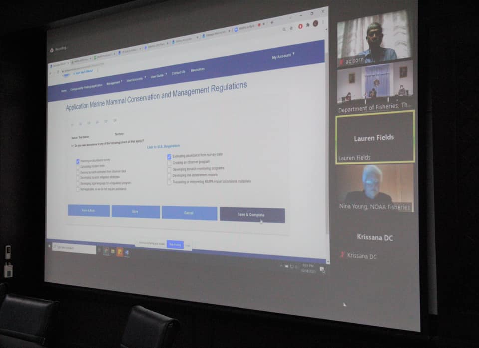 วันศุกร์ที่ 15 ตุลาคม 2564 เวลา 08.00 น. ณ ห้องประชุมกุลาดำ ชั้น 7 อาคารจุฬาภรณ์ กรมประมง ดร.ถาวร ทันใจ รองอธิบดีกรมประมง พร้อมด้วย นางชวนพิศ จันทรวราทิตย์ ผู้เชี่ยวชาญด้านที่ปรึกษาการประมงต่างประเทศ นางสาวสัมพันธ์ ปานจรัตน์ ผู้อำนวยการกองนโนบายและแผนพัฒนาการประมง ผู้แทนจากกรมทรัพยากรทางทะเลและชายฝั่ง และคณะเจ้าหน้าที่จากกรมประมง เข้าร่วมการประชุมพร้อมคณะทำงานจัดเตรียมข้อมูลสถานภาพ และแผนมาตรการในการอนุรักษ์สัตว์ทะเลเลี้ยงลูกด้วยนม สำหรับการรายงานในระบบ International Affairs Information Capture and Reporting System (IAICRS) โดยมีนายปิ่นสักก์ สุรัสวดี รองปลัดกระทรวงทรัพยากรธรรมชาติและสิ่งแวดล้อม เป็นประธานการประชุม เพื่อทำความเข้าใจร่วมกับเจ้าหน้าที่ของหน่วยงาน NOAA สหรัฐอเมริกา ผ่านระบบ VDO Conference เพื่อหารือการลงระบบ IAICRS ของประเทศไทย