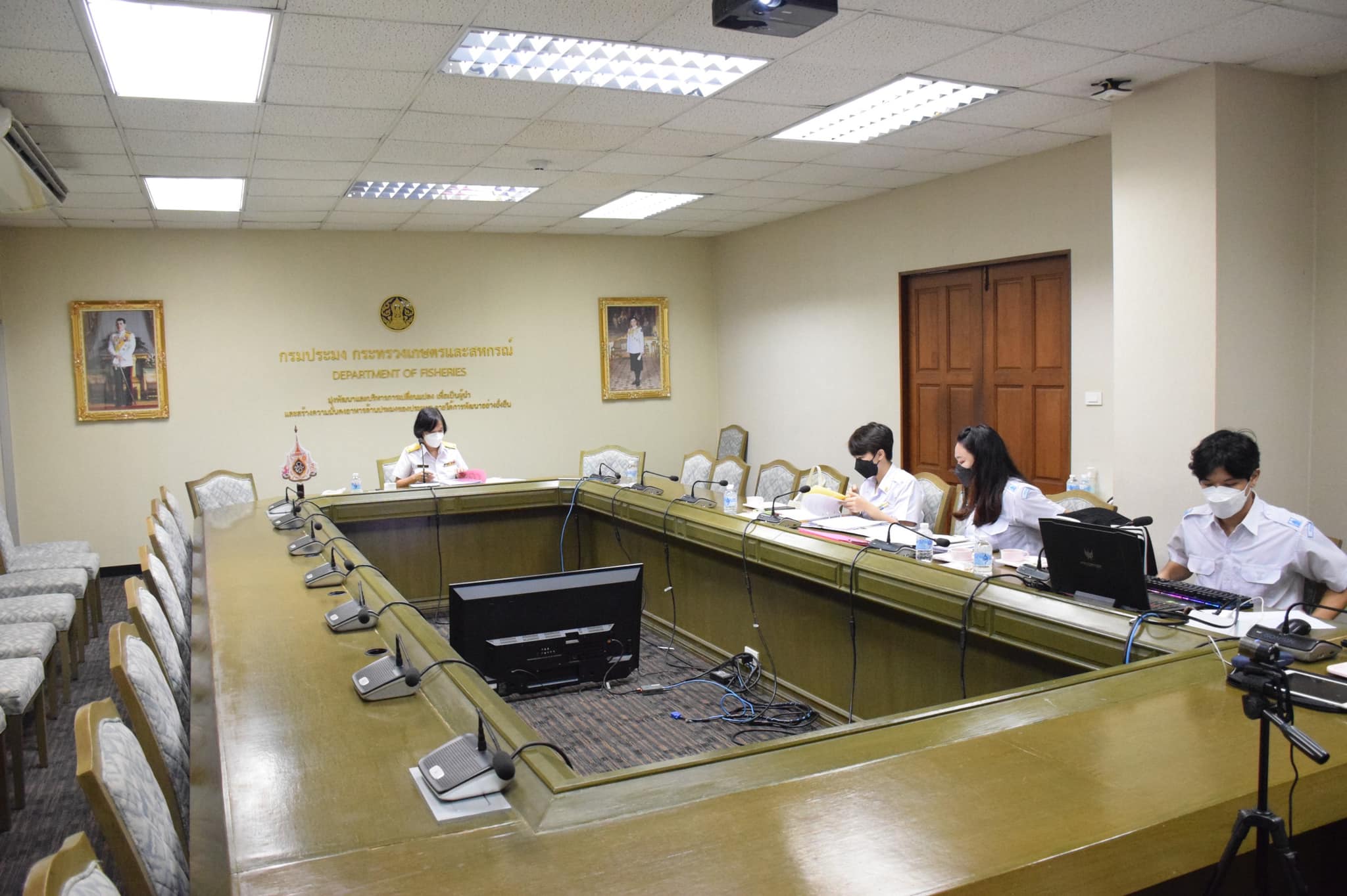 วันจันทร์ที่ 22 พฤศจิกายน 2564 เวลา 09.30 น. ณ ห้องประชุมทูน่า ชั้น 6 อาคารจุฬาภรณ์ กรมประมง นางสาวเจนจิตต์ คงกำเนิด ผู้เชี่ยวชาญด้านโรคสัตว์น้ำ เป็นประธานการประชุม คณะทำงานพิจารณาให้การรับรองสถานกักกันสัตว์น้ำและที่พักซากสัตว์น้ำเพื่อการนำเข้า นำออก หรือนำผ่านราชอาณาจักร ครั้งที่ 8/2564 ผ่านระบบ Video Confernece ร่วมกับหน่วยงานที่เกี่ยวข้อง โดยหารือพิจารณาผลการตรวจประเมินของคณะผู้ตรวจประเมินสถานกักกันสัตว์น้ำ หรือที่พักซากสัตว์น้ำเพื่อออกหนังสือรับรองฯ และประเด็นอื่นๆที่เกี่ยวข้อง ฯลฯ