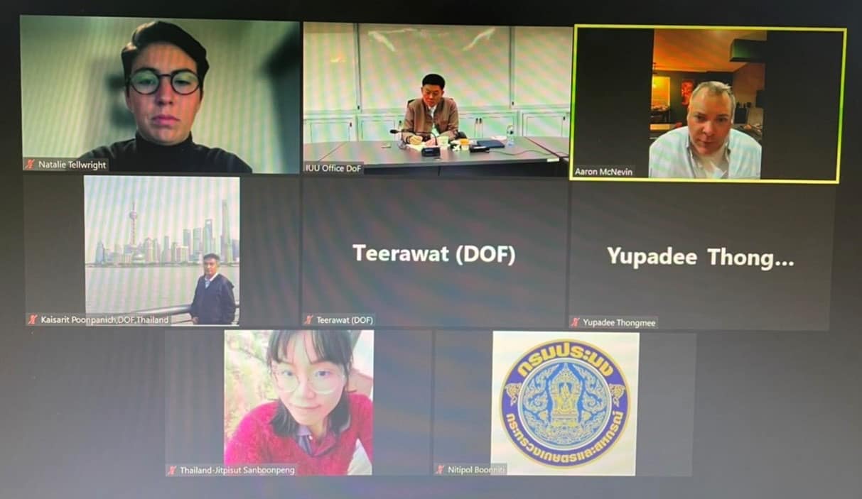 วันอังคารที่ 23 พฤศจิกายน 2564 เวลา 08.00 น. ณ ห้องประชุมตะพัดทอง ชั้น 2 อาคารกองประมงต่างประเทศ กรมประมง ดร.ถาวร ทันใจ รองอธิบดีกรมประมง เป็นประธานการประชุมเพื่อพิจารณา และให้ข้อเสนอแนะต่อรายงานการวิเคราะห์การลงแรงประมงของ OceanMind พร้อมด้วย นางชวนพิศ จันทรวราทิตย์ ผู้เชี่ยวชาญด้านที่ปรึกษาการประมงต่างประเทศ และผู้แทนจากหน่วยงานภายในกรมประมง คือ กองประมงต่างประเทศ กองบริหารจัดการเรือประมงและการทำการประมง กองตรวจสอบเรือประมง สินค้าสัตว์น้ำและปัจจัยการผลิต และกองบริหารจัดการทรัพยากรและกำหนดมาตรการ ร่วมกับผู้แทนจาก OceanMind นาย Aaron McNevin เพื่อหารือในประเด็นต่าง ๆ ผ่านระบบการประชุมทางไกลออนไลน์ อาทิ การพัฒนาโครงการแรงงานบนเรือประมง โดยจะขอเงินทุนสนับสนุนจาก Humanity United ซึ่งกิจกรรมที่ OceanMind ให้การสนับสนุนกรมประมง ได้แก่ การดำเนินการตามมาตรการรัฐเจ้าของท่า PSM และ FMC นอกจากนี้ที่ประชุมยังมีมติให้หน่วยงานที่เกี่ยวข้องของกรมประมงเสนอกิจกรรมที่สำคัญของหน่วยงาน เพื่อขอรับการสนับสนุนเงินทุนจาก Seafood Task Force ในปี 2565 ต่อไป