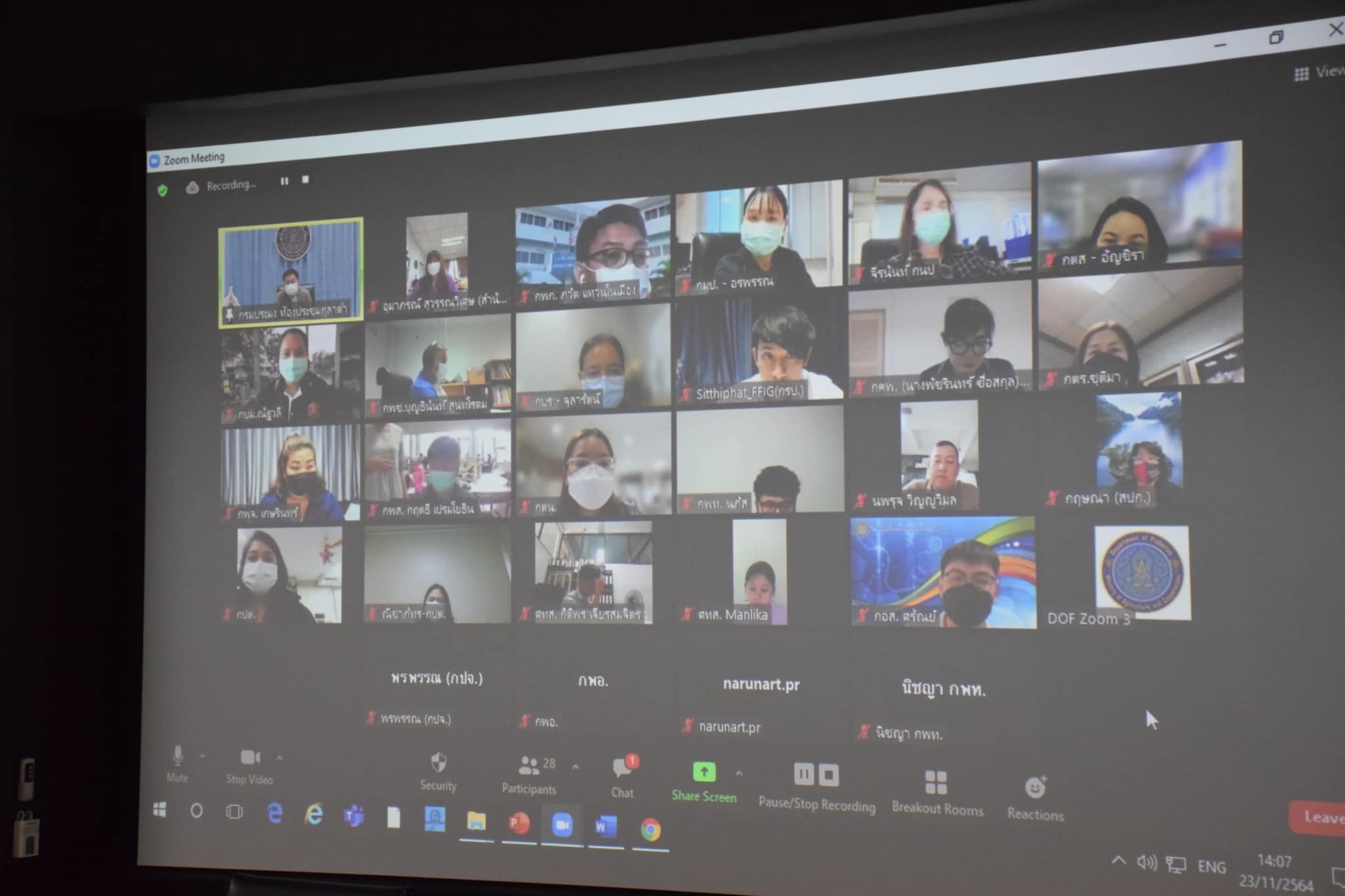 วันอังคารที่ 23 พฤศจิกายน 2564 เวลา 14.00 น. ณ ห้องประชุมกุลาดำ ชั้น 7 อาคารจุฬาภรณ์ กรมประมง ดร.ถาวร ทันใจ รองอธิบดีกรมประมง เป็นประธานการประชุม การปรับปรุงการดำเนินงานประเมินความเสี่ยงด้านต่างๆ ของกรมประมง ครั้งที่ 1/2564 ผ่านระบบ Video Conference ร่วมกับหน่วยงานที่เกี่ยวข้อง เพื่อหารือแนวทางการบริหารจัดการความเสี่ยงสำหรับหน่วยงานภาครัฐ และการดำเนินงานประเมินความเสี่ยงด้านต่างๆ ของกรมประมง อาทิ ด้านการดำเนินงาน มุ่งหมายให้การปฏิบัติงานเกิดประสิทธิภาพ ประสิทธิผล และคุ้มค่า มีการใช้ทรัพยากรอย่างเหมาะสมและทำงานอย่างปลอดการทุจริต, ด้านการรายงานทางการเงิน ต้องมีความน่าเชื่อถือ ทันเวลา มีคุณภาพเหมาะสมสำหรับการนำไปใช้เป็นข้อมูลประกอบการพิจารณาตัดสินใจของผู้บริหาร, ด้านการปฏิบัติให้เป็นไปตามกฎ ระเบียบ และนโยบาย เพื่อป้องกันมิให้เกิดผลเสียหายใดๆ จากการละเว้นการปฏิบัติ และประเด็นอื่นๆที่เกี่ยวข้อง ฯลฯ