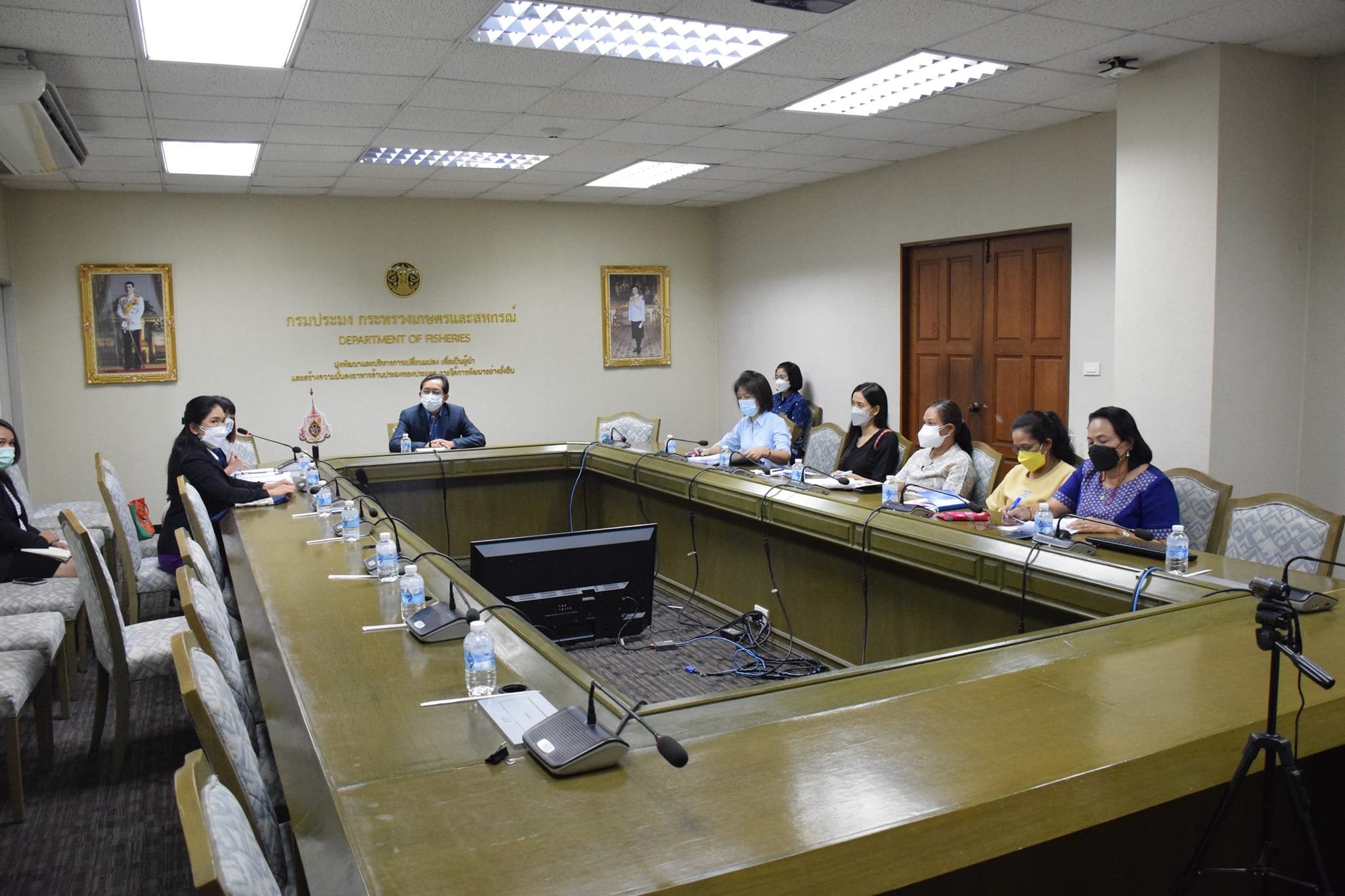 นายเฉลิมชัย สุวรรณรักษ์ รองอธิบดีกรมประมง พร้อมด้วย ดร.อังคณา ผลเจริญ หัวหน้ากลุ่มบัญชี รักษาราชการแทนผู้อำนวยการกองบริหารการคลัง หัวหน้ากลุ่มงานในสังกัดกองบริหารการคลัง นางสุจิตรา วรรณพัฒน์ หัวหน้ากลุ่มบริหารแผนพัฒนาการประมง กองนโยบายและแผนพัฒนาการประมง และเจ้าหน้าที่ที่เกี่ยวข้อง เข้าร่วมการประชุมเปิดตรวจรายงานการเงินของเงินทุนหมุนเวียนในการผลิตพันธุ์ปลา พันธุ์กุ้ง และพันธุ์สัตว์น้ำอื่น ๆ กรมประมง โดยมีนางสาวบุบผา วิยะรัตน์ ผู้อำนวยการสำนักตรวจสอบการเงินและบริหารพัสดุที่ 9 สำนักงานการตรวจเงินแผ่นดิน เป็นประธานการประชุม และมีเจ้าหน้าที่สายตรวจสำนักงานการตรวจเงินแผ่นดินเข้าร่วมประชุม เพื่อตรวจสอบรายงานการเงินของเงินทุนหมุนเวียนในการผลิตพันธุ์ปลา พันธุ์กุ้ง และพันธุ์สัตว์น้ำอื่น ๆ ของกรมประมง สำหรับปีสิ้นสุดวันที่ 30 กันยายน 2564 และการตรวจสอบการจัดซื้อจัดจ้างและบริหารพัสดุ ตั้งแต่วันที่ 1 ตุลาคม 2564 ถึงวันที่ 30 กันยายน 2565