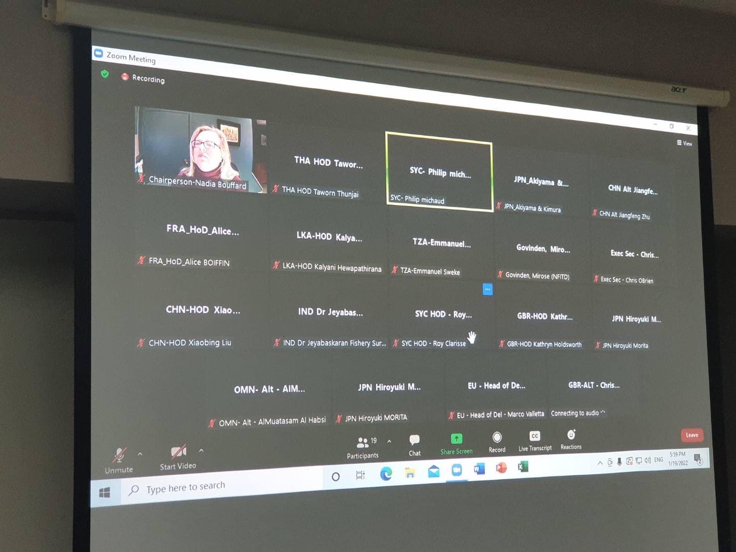 วันพุธที่ 19 มกราคม 2565 เวลา 18.00 น. ณ ห้องประชุมปากเปี่ยน ชั้น 5 อาคารจุฬาภรณ์ กรมประมง ดร.ถาวร ทันใจ รองอธิบดีกรมประมง ในฐานะหัวหน้าคณะผู้แทนไทย เข้าร่วมการประชุมหัวหน้าคณะผู้แทนและผู้แทนสำรองภายใต้กรอบคณะกรรมาธิการปลาทูน่าแห่งมหาสมุทรอินเดีย (IOTC) ผ่านระบบ Video Conference ร่วมกับประเทศภาคีสมาชิก เพื่อพิจารณาเลื่อนการประชุม the Technical Committee on Allocation Criteria (TCAC) ครั้งที่ 10 ซึ่งการประชุมดังกล่าวมีกำหนดจัดการประชุมในระหว่างวันที่ 14 – 17 มีนาคม 2565 เนื่องจากสถานการณ์การแพร่ระบาดของโรคติดเชื้อไวรัสโคโรนา 2019 (COVID - 19) จึงทำให้ไม่สามารถจัดการประชุมในรูปแบบ face – to – face ได้