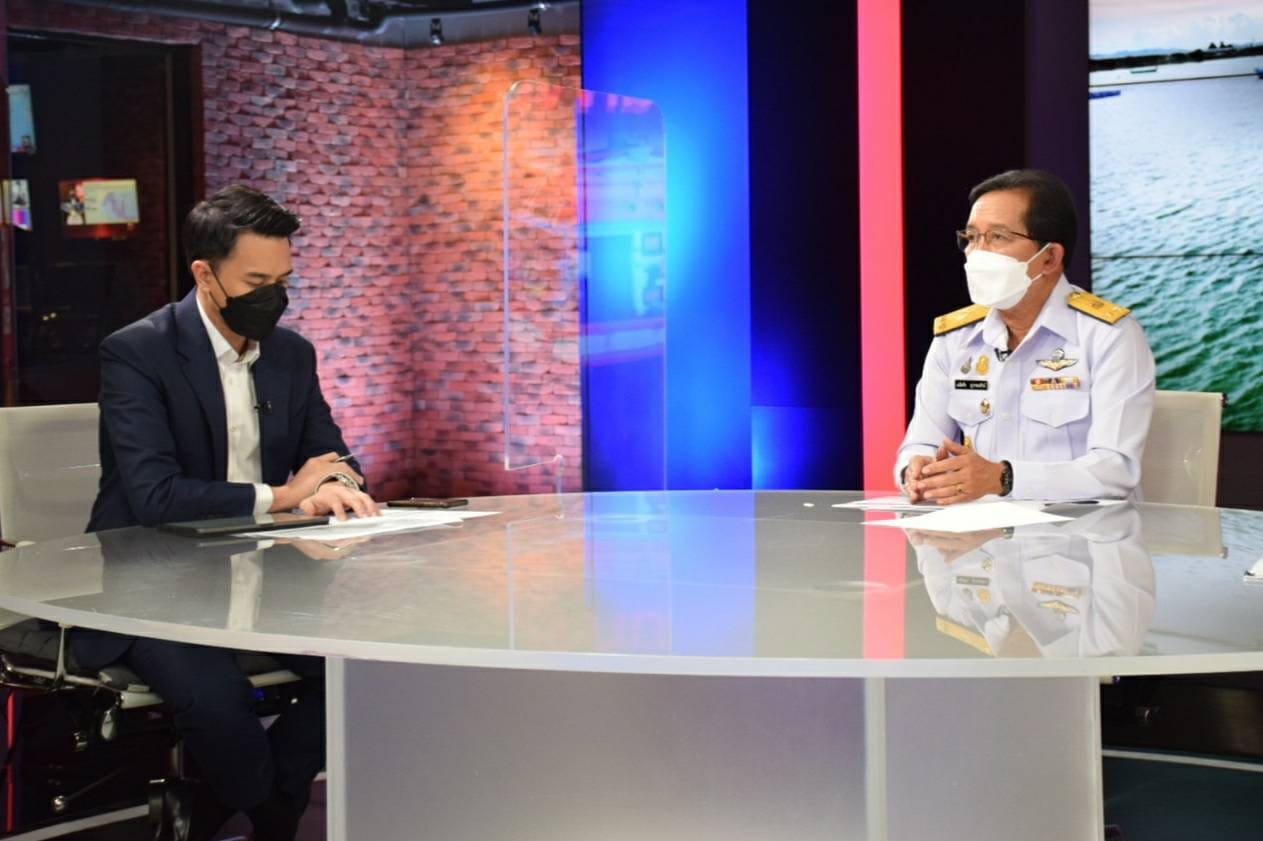 นายเฉลิมชัย สุวรรณรักษ์ รองอธิบดีกรมประมง พร้อมด้วย ดร.ปวโรจน์ นรนาถตระกูล นักวิชาการประมงชำนาญการพิเศษ กรมประมง ร่วมให้สัมภาษณ์สดกับสื่อมวลชนในประเด็น