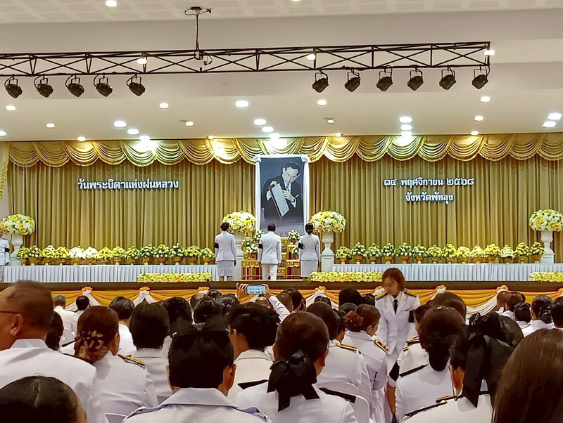 วันที่ 14 พฤศจิกายน 2568 นายณัฐชพงศ์ เพชรฤทธิ์ ผู้อำนวยการศูนย์วิจัยและพัฒนาประมงน้ำจืดพัทลุง มอบหมายให้นางสาวจุฬาภร ชูแก้ว นักวิชาการประมงชำนาญการ และนายพัทธเมศวร์ ช่างชุม นักวิชาการประมงปฏิบัติการ ร่วมพิธีวางพานพุ่มดอกไม้สดถวายราชสักการะ น้อมรำลึกในพระมหากรุณาธิคุณ พระบาทสมเด็จพระบรมชนกาธิเบศร มหาภูมิพลอดุลยเดชมหาราช บรมนาถบพิตร เนื่องในวันพระบิดาแห่งฝนหลวง ประจำปี 2568 ณ หอประชุมจังหวัดพัทลุง อำเภอเมือง จังหวัดพัทลุง โดยมีนายธราวุธ ช่วยเกิด รองผู้ว่าราชการจังหวัดพัทลุง รักษาราชการแทนผู้ว่าราชการจังหวัดพัทลุง เป็นประธานในพิธี