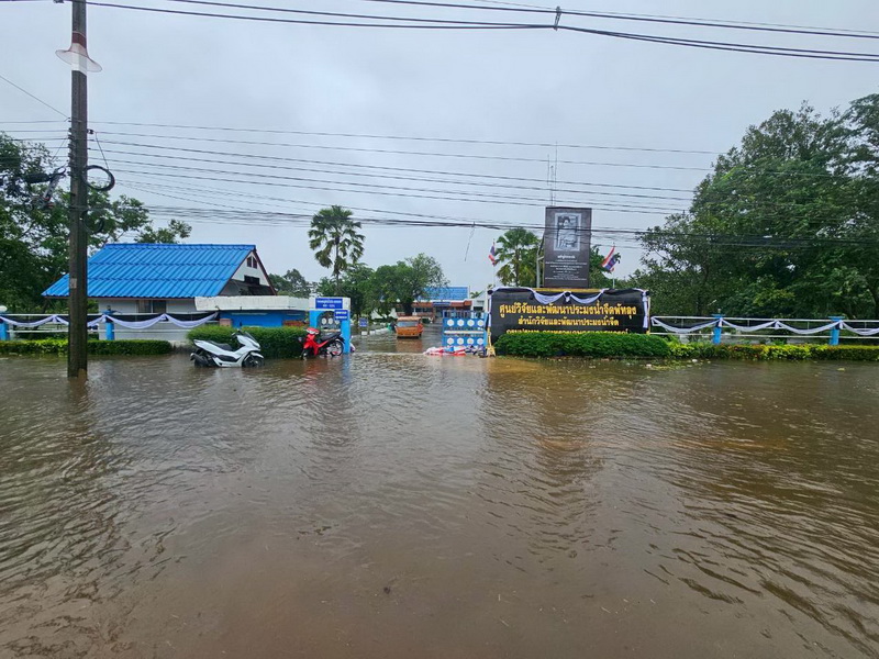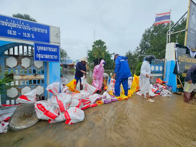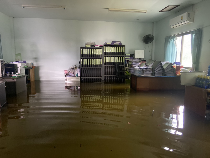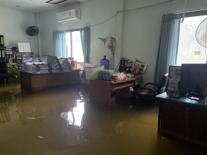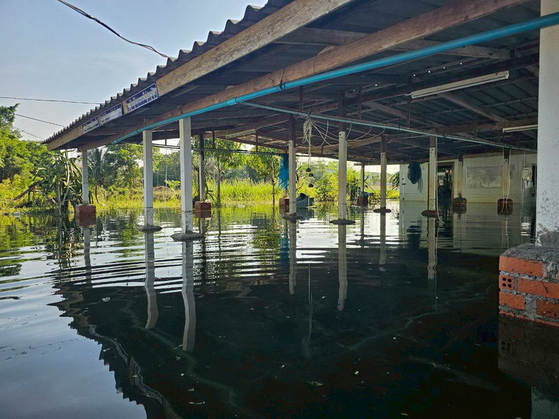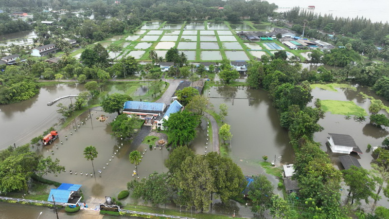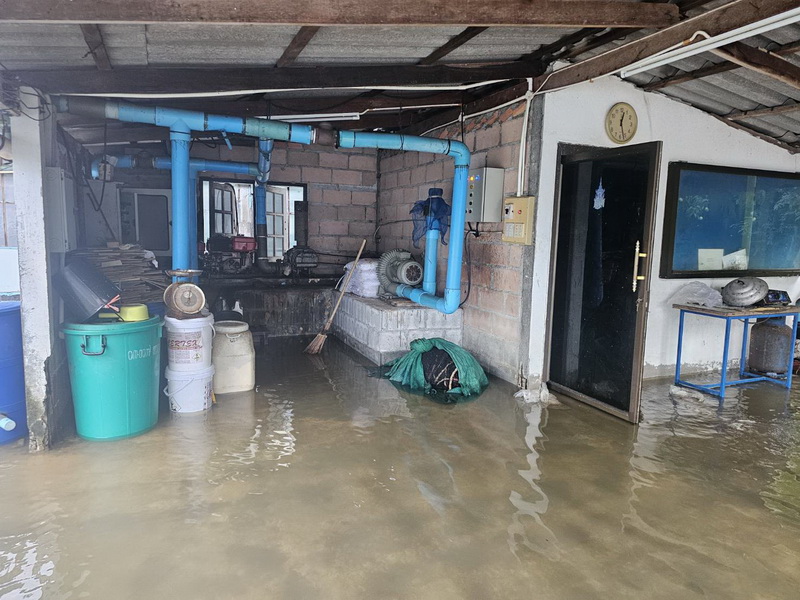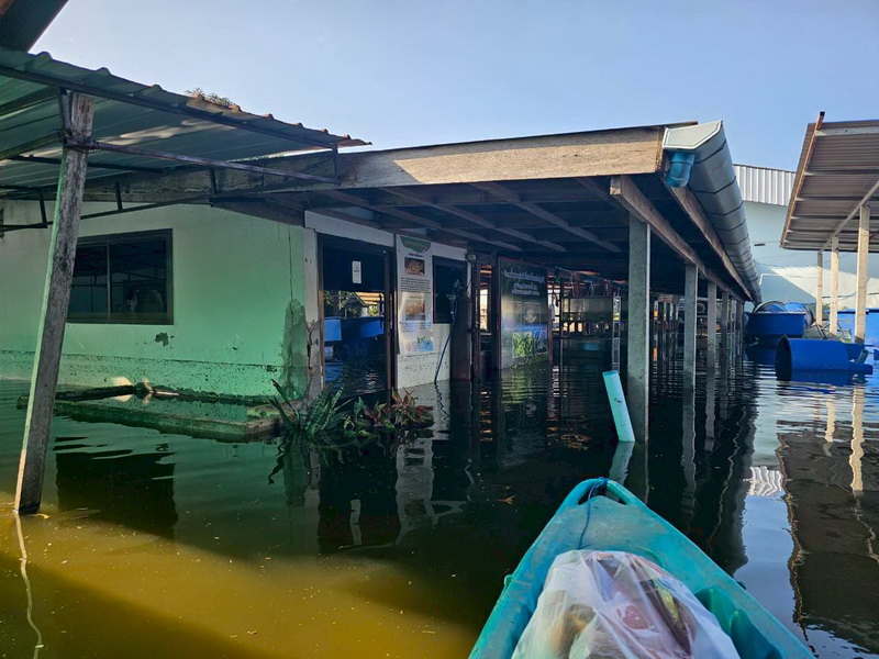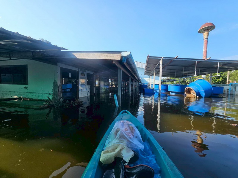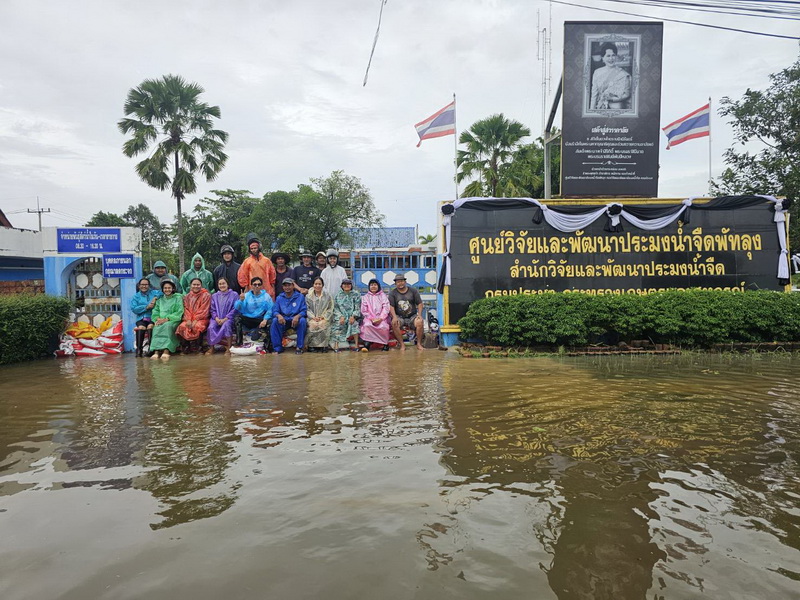 วันที่ 21 - 30 พฤศจิกายน 2568 นายณัฐชพงศ์ เพชรฤทธิ์ ผู้อำนวยการศูนย์วิจัยและพัฒนาประมงน้ำจืดพัทลุง นำข้าราชการ และเจ้าหน้าที่ของศูนย์ ฯ ร่วมเฝ้าระวังสถานการณ์น้ำและป้องกันอุทกภัยในพื้นที่ แต่เนื่องจากปริมาณน้ำฝนมีมากกว่าทุกปี ระดับน้ำภายนอกสูงกว่าคันกั้นน้ำ ทำให้น้ำไหลบ่าเข้าท่วมเต็มพื้นที่ศูนย์ ฯ เกินกว่าที่จะป้องกันได้ ทำให้เกิดความเสียหายแก่อาคารสถานที่ บ้านพักข้าราชการและเจ้าหน้าที่ สิ่งของเครื่องใช้ในบ้าน โรงเพาะฟักสัตว์น้ำ บ่อดิน และครุภัณฑ์ต่าง ๆ
