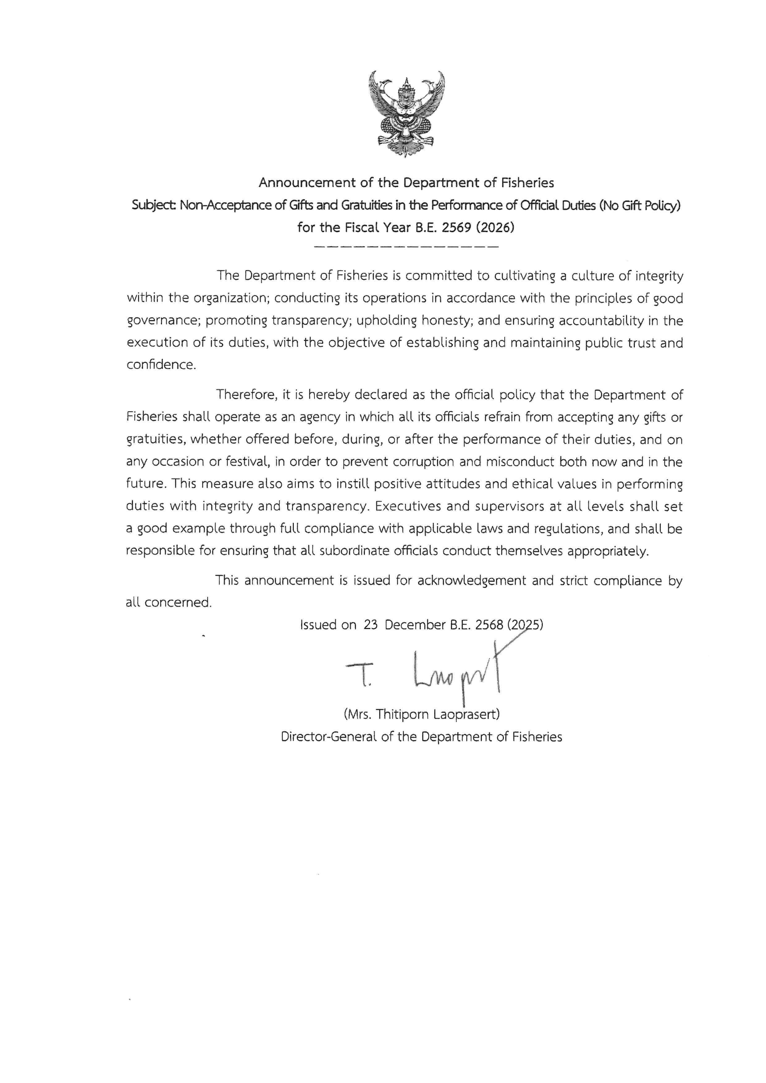 การไม่รับของขวัญจากการปฏิบัติหน้าที่ (กรมประมง)..คลิก