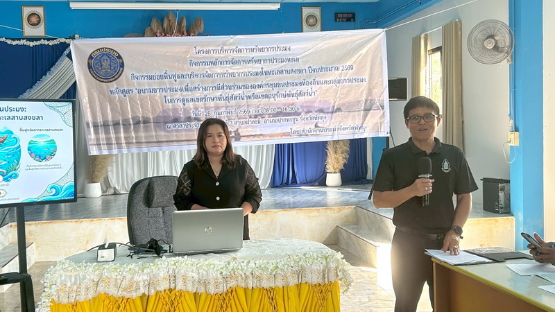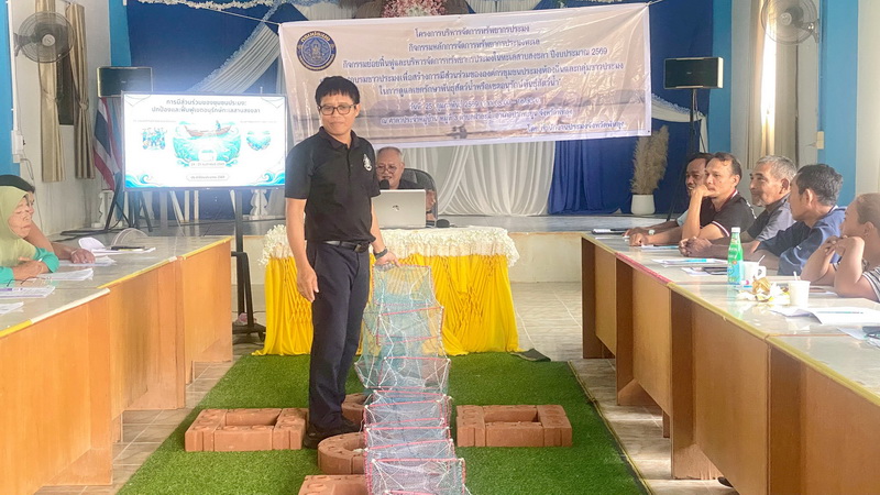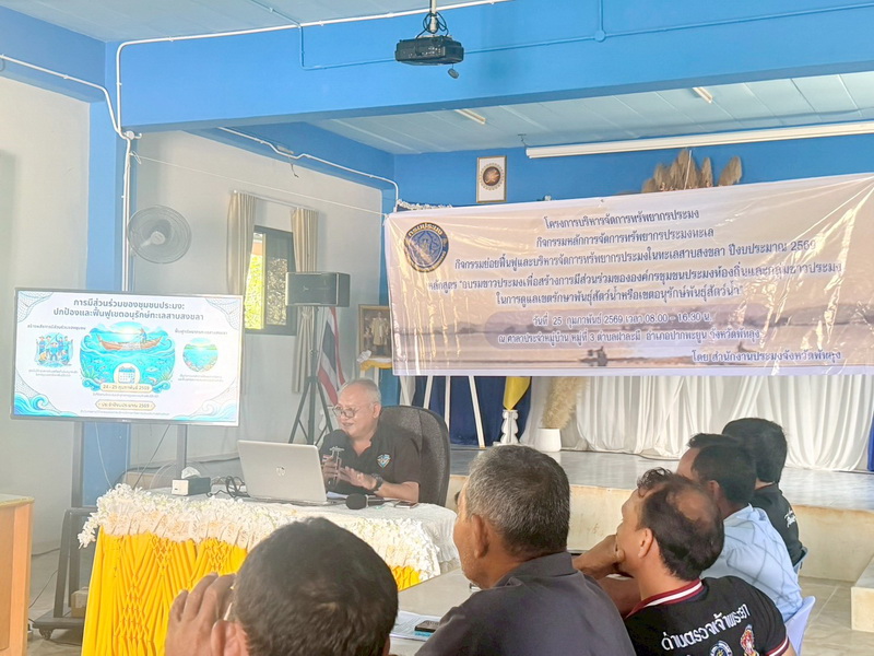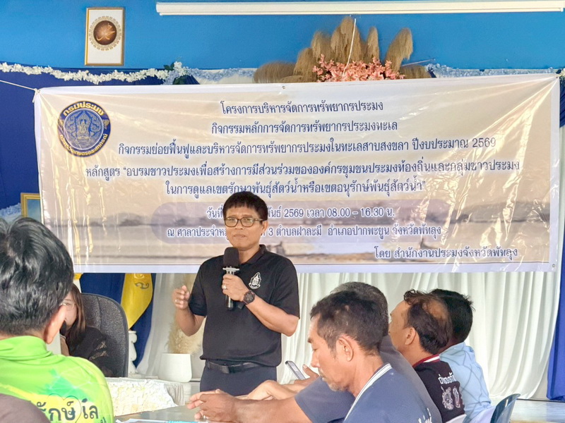 วันที่ 25 กุมภาพันธ์ 2569 นายณัฐชพงศ์ เพชรฤทธิ์ ผู้อำนวยการศูนย์วิจัยและพัฒนาประมงน้ำจืดพัทลุง มอบหมายให้นางสุกัญญา ดำชู นักวิชาการประมงชำนาญการพิเศษ ร่วมกับนายนิรันดร์ อุบลสุวรรณ หัวหน้ากลุ่มบริหารจัดการด้านการประมง นายสมปราถ นวลแก้ว ประมงอำเภอปากพะยูน นางสาวทิพากร สุขพล ประมงอำเภอบางแก้ว เจ้าหน้าที่จากสำนักงานประมงจังหวัดพัทลุง และเจ้าหน้าที่จากหน่วยป้องกันและปราบปรามประมงน้ำจืดพัทลุง เป็นวิทยากรบรรยาย หัวข้อสภาวะทรัพยากรประมงในจังหวัดพัทลุง การฝึกอบรมหลักสูตร "อบรมชาวประมงเพื่อสร้างการมีส่วนร่วมขององค์กรชุมชนประมงท้องถิ่นและกลุ่มชาวประมงในการดูแลเขตรักษาพันธุ์สัตว์น้ำหรือเขตอนุรักษ์พันธุ์สัตว์น้ำ" ภายใต้โครงการบริหารจัดการทรัพยากรประมง กิจกรรมหลักการจัดการทรัพยากรประมงทะเล กิจกรรมย่อยฟื้นฟูและบริหารจัดการทรัพยากรประมงในทะเลสาบสงขลา ประจำปีงบประมาณ 2569 ณ ศาลาประจำหมู่บ้าน หมู่ที่ 3 ตำบลฝาละมี อำเภอปากพะยูน จังหวัดพัทลุง