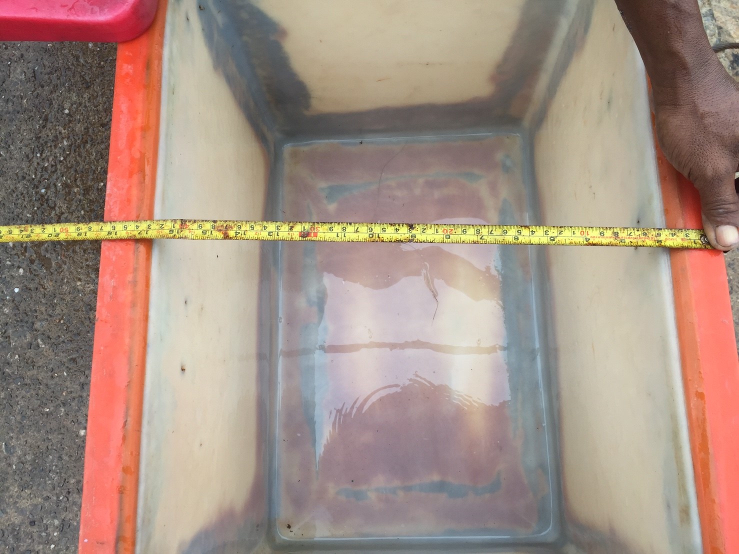 เจ้าหน้าที่ตรวจสัตว์น้ำหน้าท่าประจำศูนย์แจ้งเข้า-ออกเรือประมง หลังสวน ดำเนินการจัดทำมาตรฐานการประเมินน้ำหนักสัตว์น้ำแต่ละชนิด ซึ่งบรรจุในประเภทภาชนะที่แตกต่างกันประจำศูนย์ควบคุมการแจ้งเข้า-ออก เพื่อจัดเก็บไว้กับคู่มือปฏิบัติงาน เพื่อเป็นเอกสารสำหรับอ้างอิงคำนวณน้ำหนักย้อนกลับ จากการนับจำนวนภาชนะ