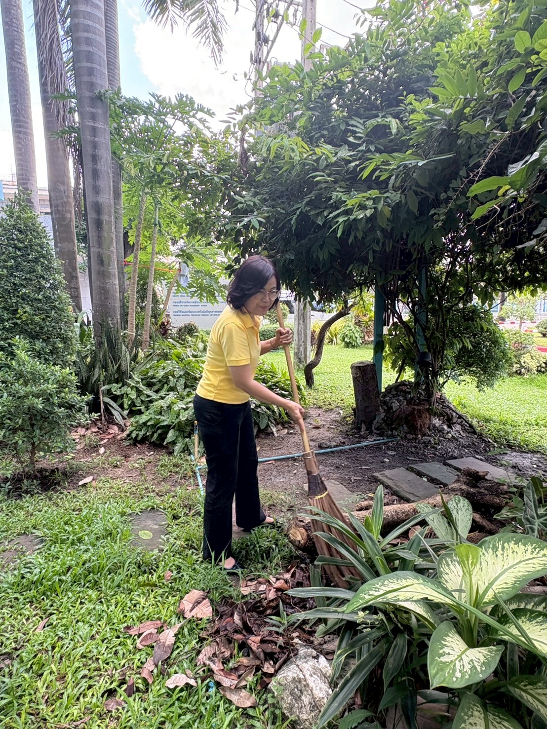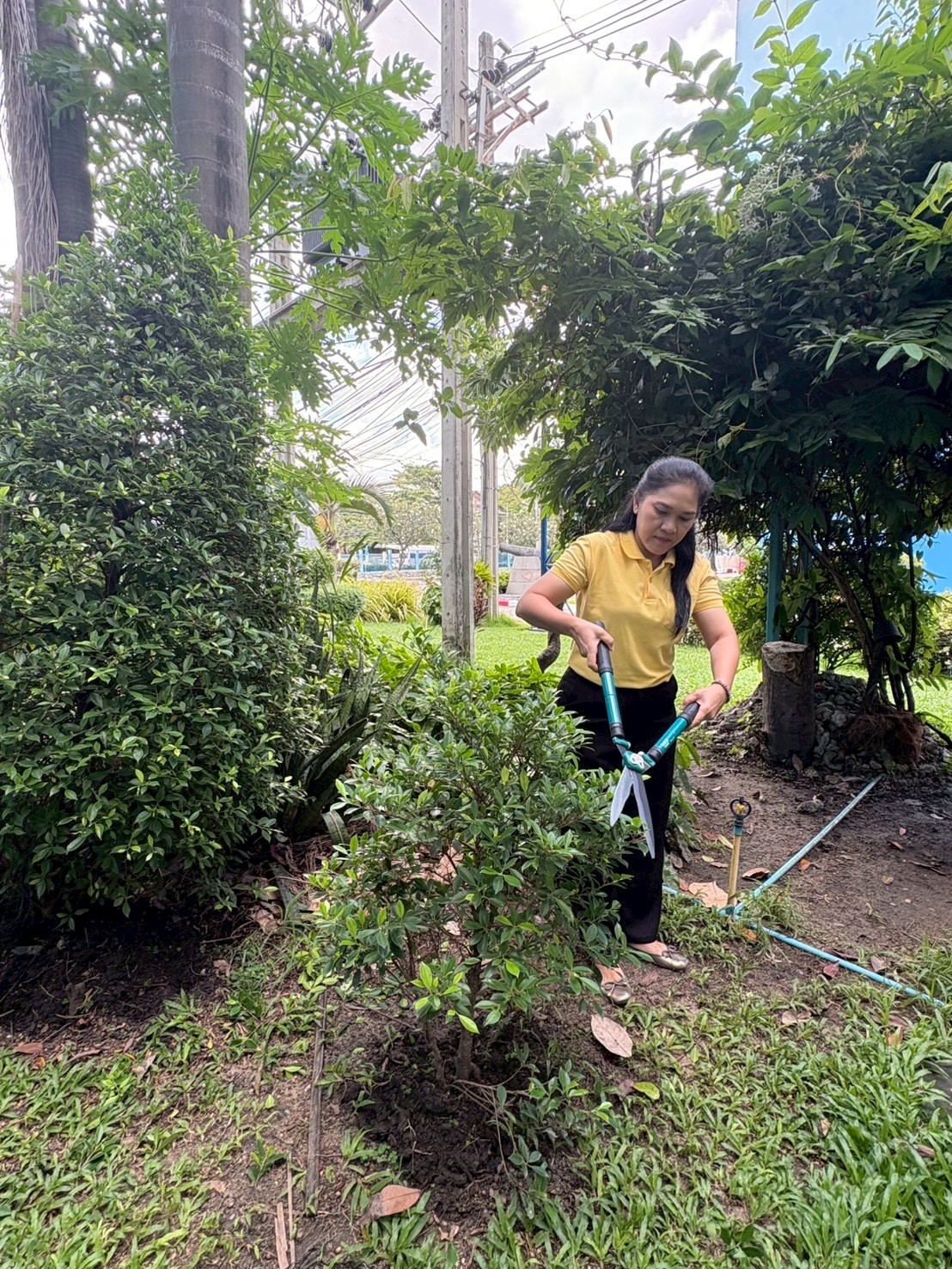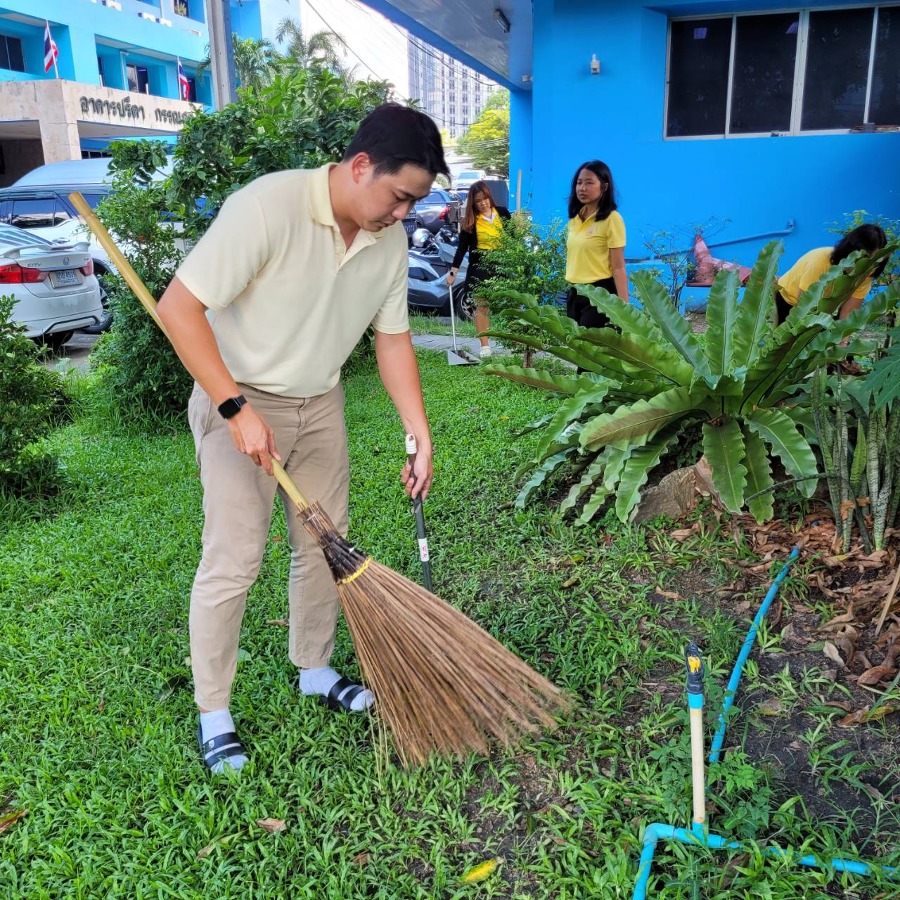 ร่วมกันบำรุงดูแลรักษาต้นไม้ และปรับปรุงภูมิทัศน์หน้าอาคารปลอดประสพ กรมประมง เพื่อส่งเสริมจิตสำนึกในการอนุรักษ์สิ่งแวดล้อมและทรัพยากรป่าไม้ของชาติ