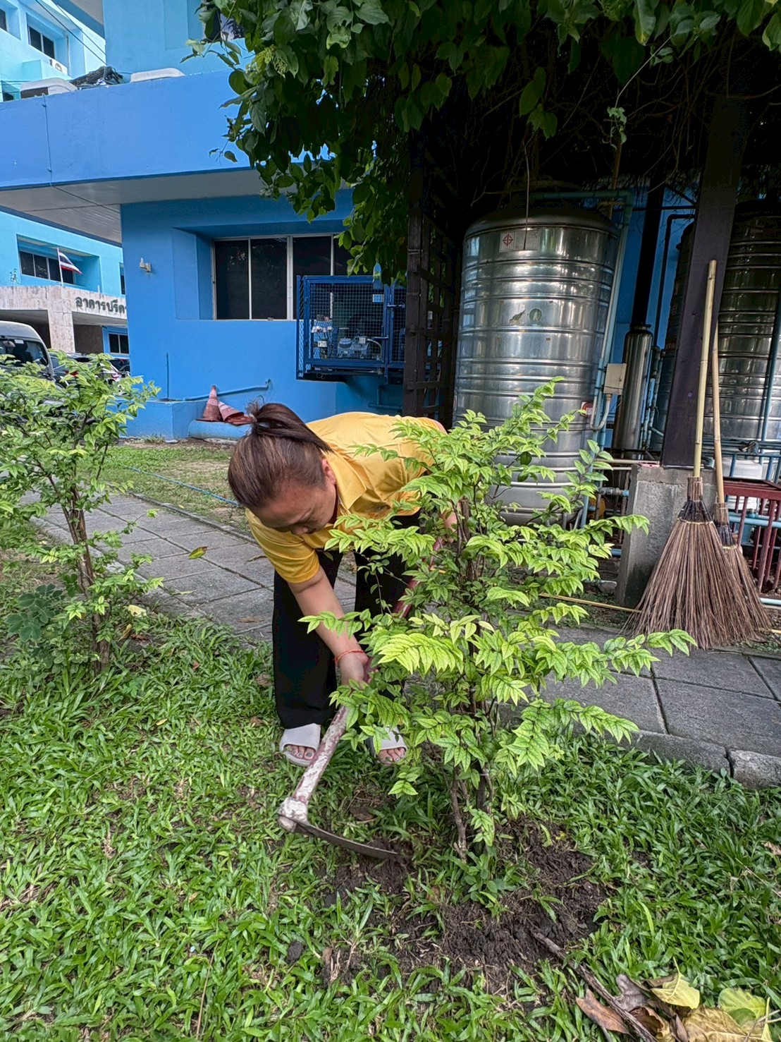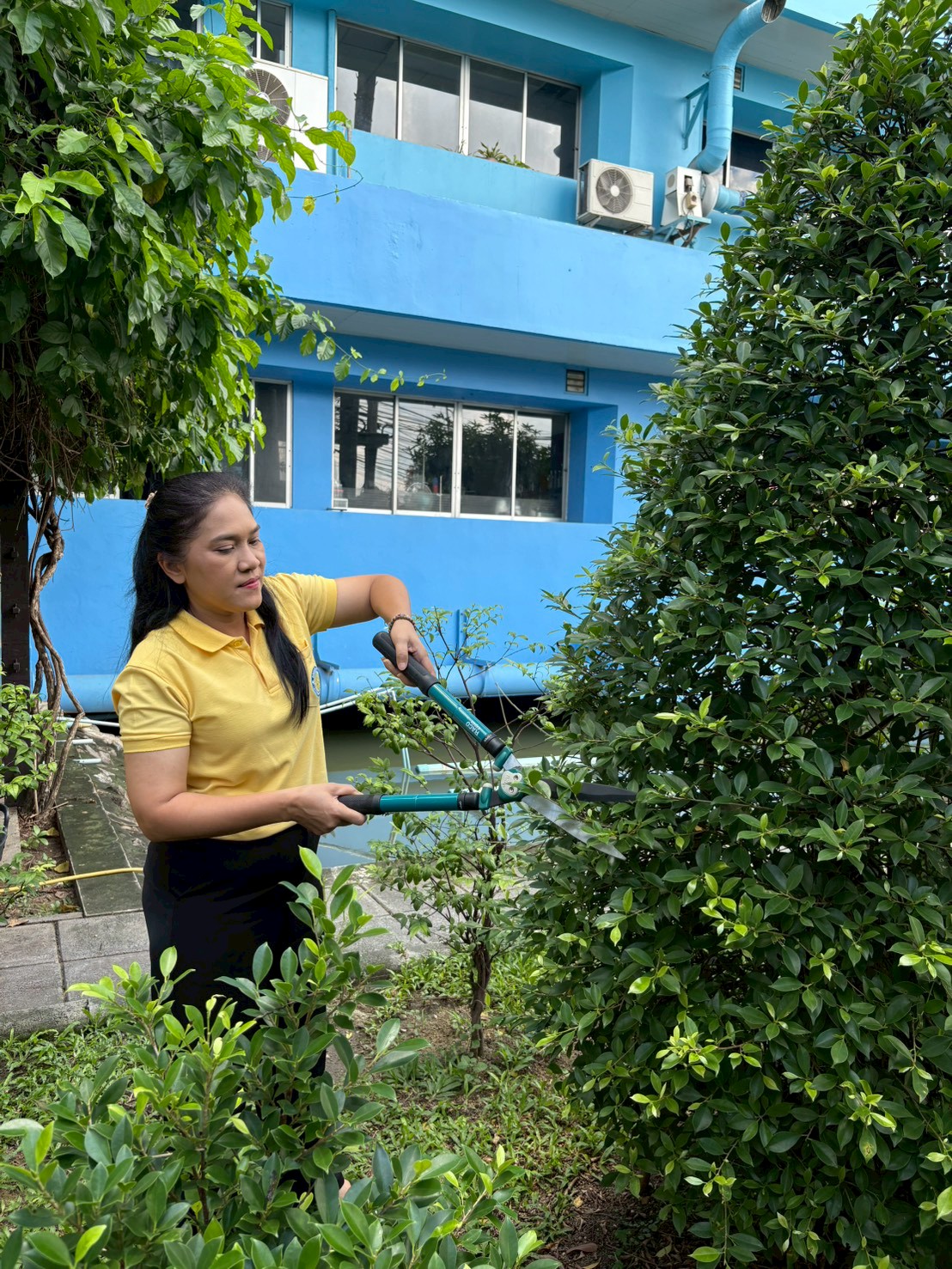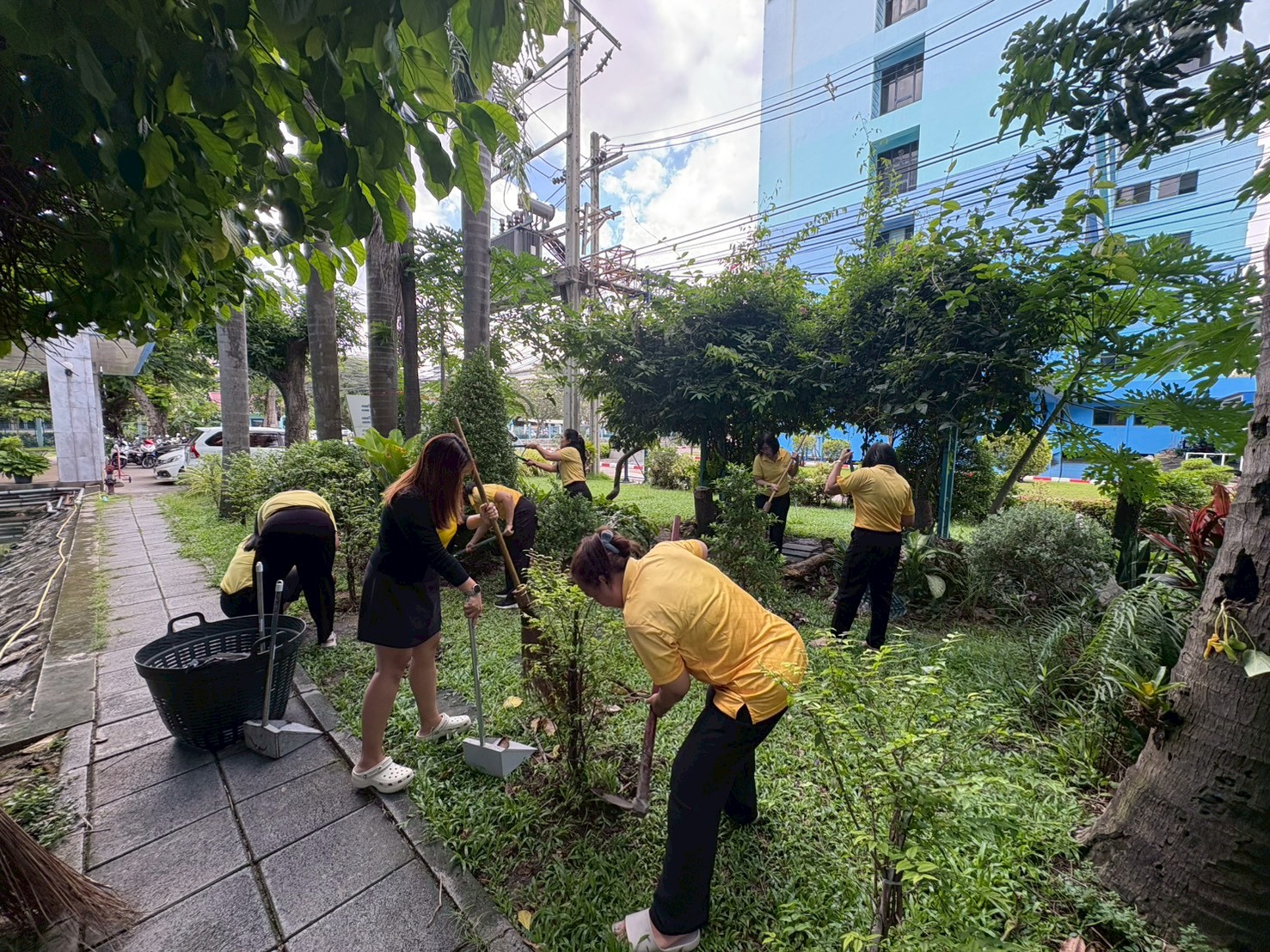 ร่วมกันบำรุงดูแลรักษาต้นไม้ และปรับปรุงภูมิทัศน์หน้าอาคารปลอดประสพ กรมประมง เพื่อส่งเสริมจิตสำนึกในการอนุรักษ์สิ่งแวดล้อมและทรัพยากรป่าไม้ของชาติ